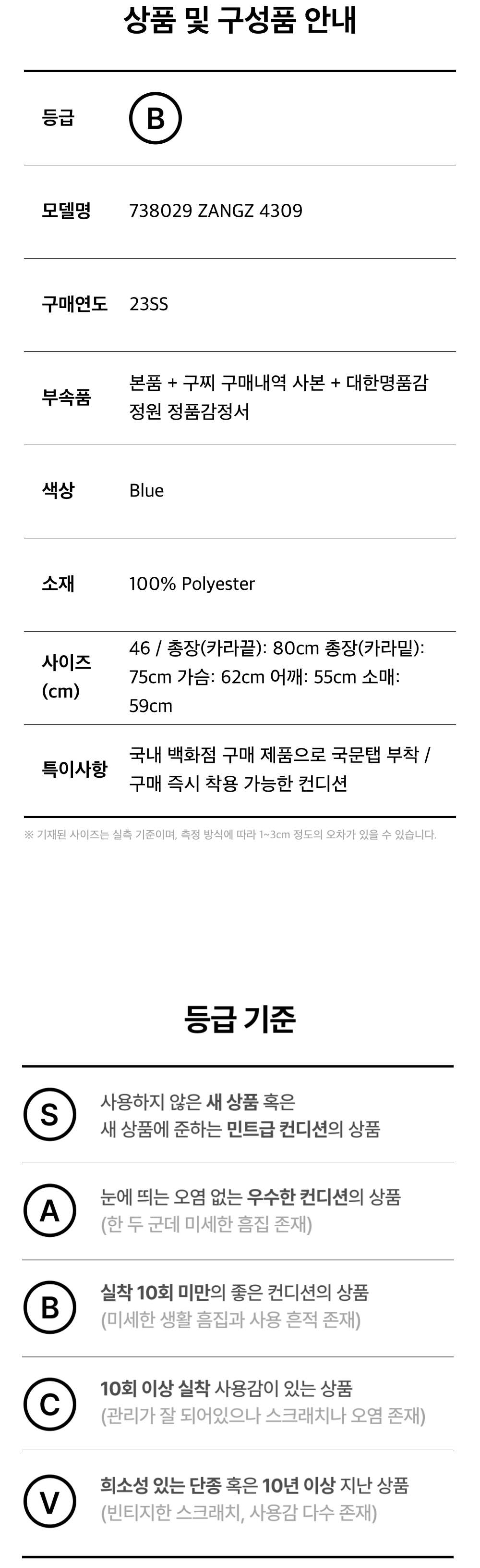 모든 상품(가죽, 의류, 잡화, 슈즈 등)은 사용자의 사용방법과 환경에 따라 변형, 변색이 될 수 있으니 반드시 취급 라벨에 표시된 관리 안내를 따르시길 권장 드립니다. 이는 정도의 차이가 있으며 과도한 체열과 땀, 습기, 빛, 마찰은 제품의 손상 및 변형을 일으킬 수 있으므로 주의하시길 바랍니다.