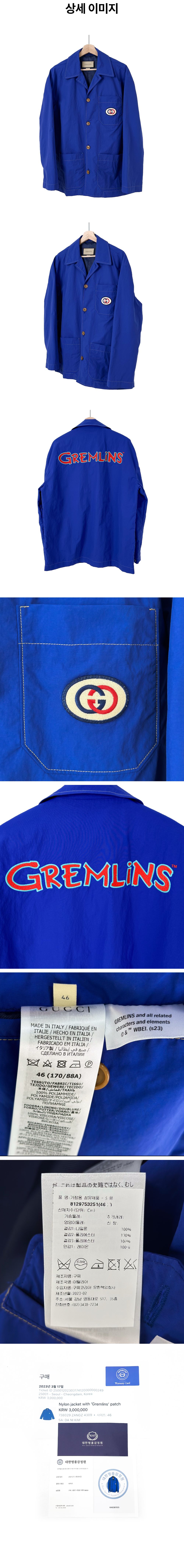 구찌 x 그렘린 남성 패치 나일론 셔츠 워크 자켓