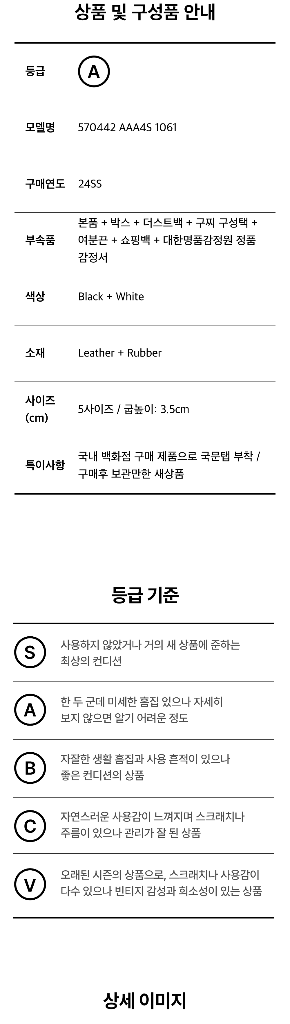 모든 상품(가죽, 의류, 잡화, 슈즈 등)은 사용자의 사용방법과 환경에 따라 변형, 변색이 될 수 있으니 반드시 취급 라벨에 표시된 관리 안내를 따르시길 권장 드립니다. 이는 정도의 차이가 있으며 과도한 체열과 땀, 습기, 빛, 마찰은 제품의 손상 및 변형을 일으킬 수 있으므로 주의하시길 바랍니다.