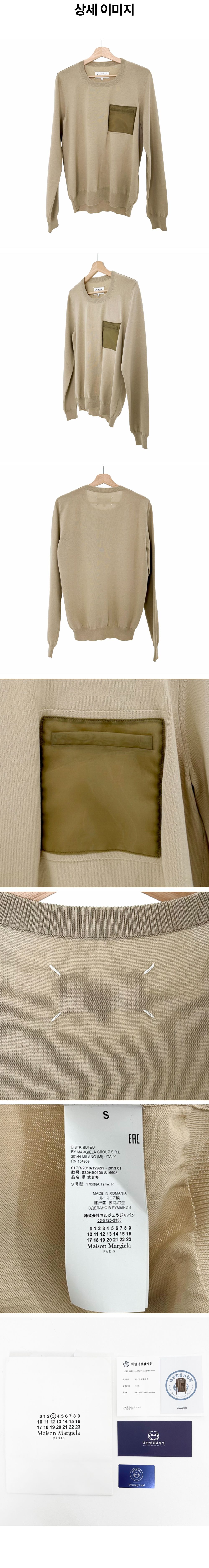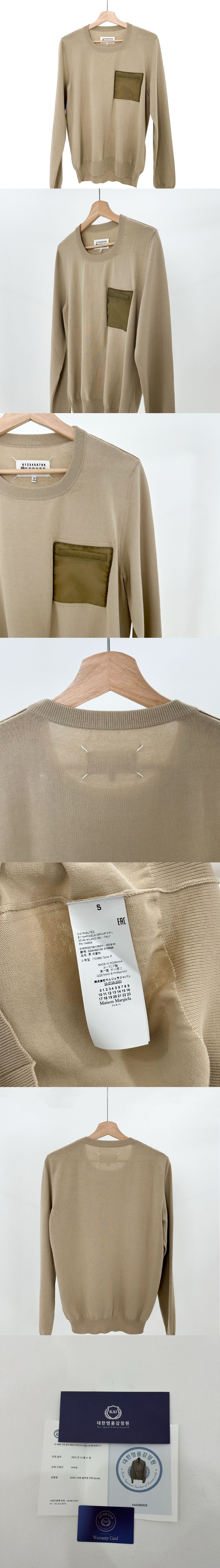 메종 마르지엘라 남성 포켓 패치 스티치 니트 티셔츠 베이지
