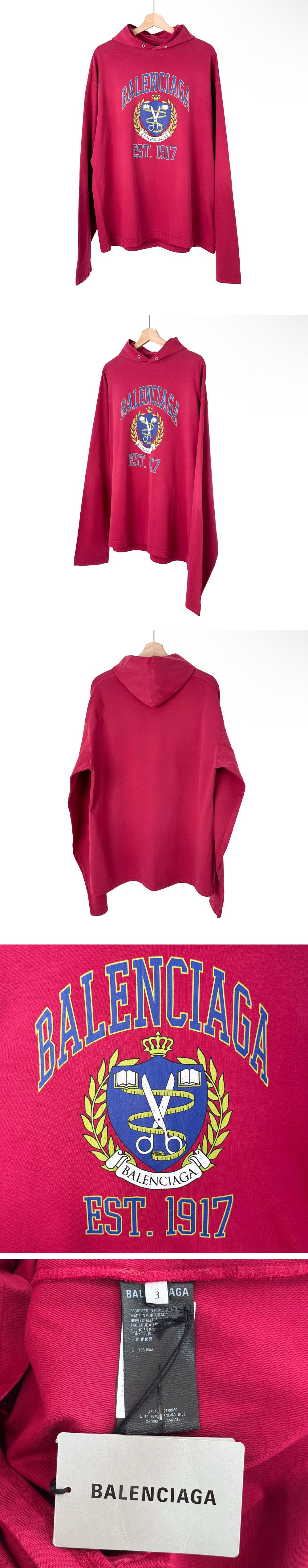발렌시아가 남성 EST 1917 로고 롱 슬리브 후드 티셔츠