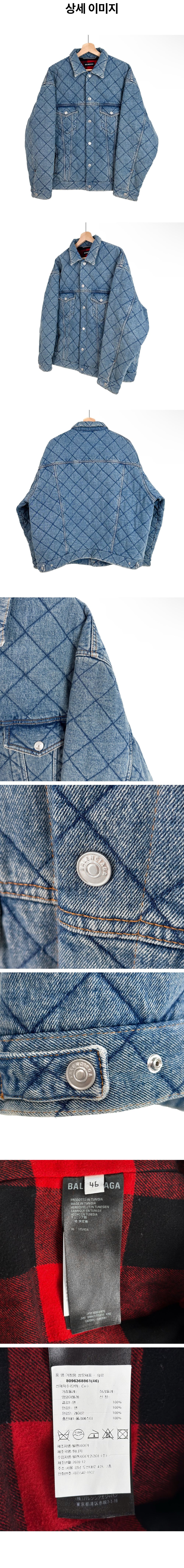 발렌시아가 남성 자카드 오버사이즈 퀄팅 패디드 데님 트러커 자켓