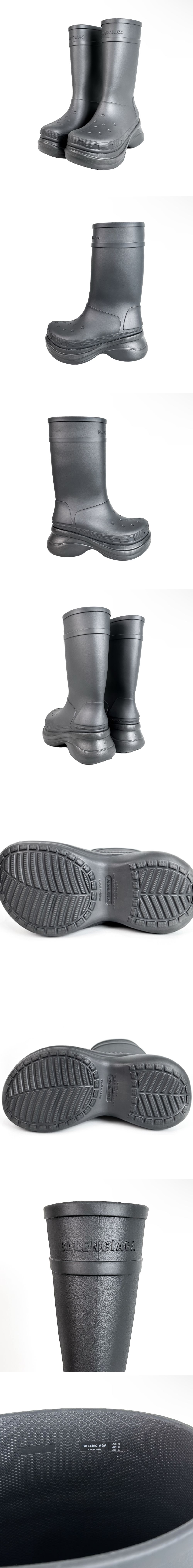 발렌시아가 x 크록스 남성 클로그 로고 러버 부츠 그레이