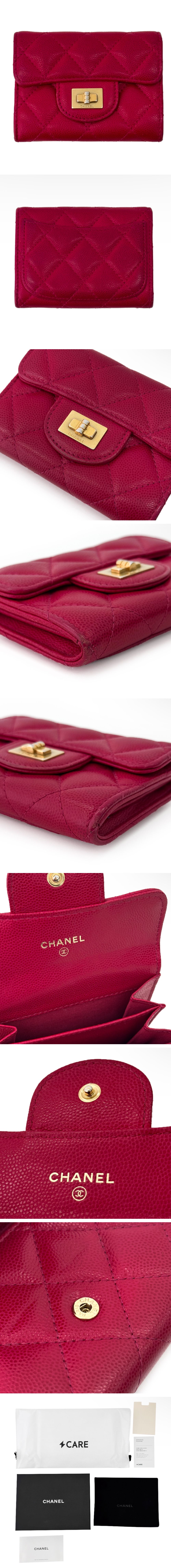 샤넬 여성 2.55 빈티지 캐비어 똑딱이 플랩 카드 지갑