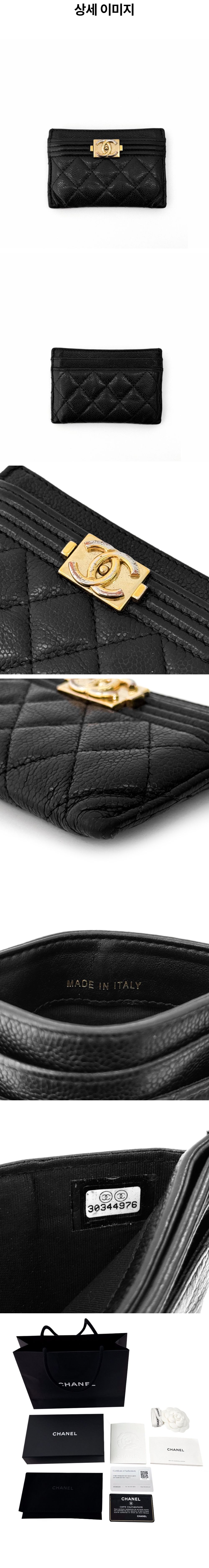 샤넬 보이 클래식 캐비어 카드 홀더 지갑 금장 블랙