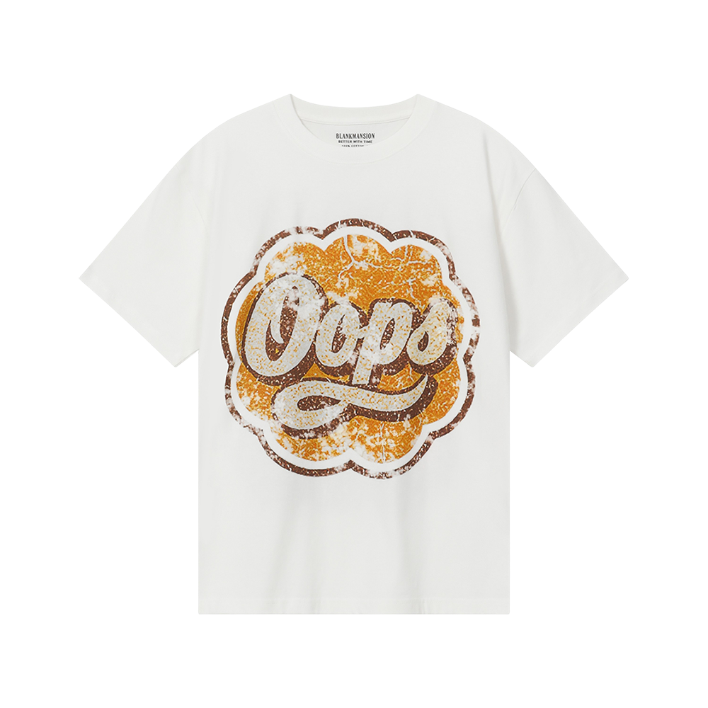 25SS 블랭크맨션 발매 제품 5.6oz Heavy weight, 면 100% 옆 봉제선이 없는 튜블러 편직 넥 라인의 더블 스티치 전면 그래픽 프린팅 후면 패러디 포인트 그래픽 5.6온스의 헤비웨이트 티셔츠 입니다. 익숙한 적당한 오버핏 사양의 누구나 쉽게 즐길수 있고 편안하게 입을 수 있는 사이징을 적용 했습니다. 여름 티셔츠를 오래 입다 보면 가장 쉽게 소모 되는 넥라인 형태를 유지하기 위해 더블 스티치 사양을 적용 했습니다. 옆구리 봉제선이 없는 튜블러 편직은 오래 입을수록 나의 체형에 맞는 실루엣과 편안한 착용감을 줄 수 있습니다.