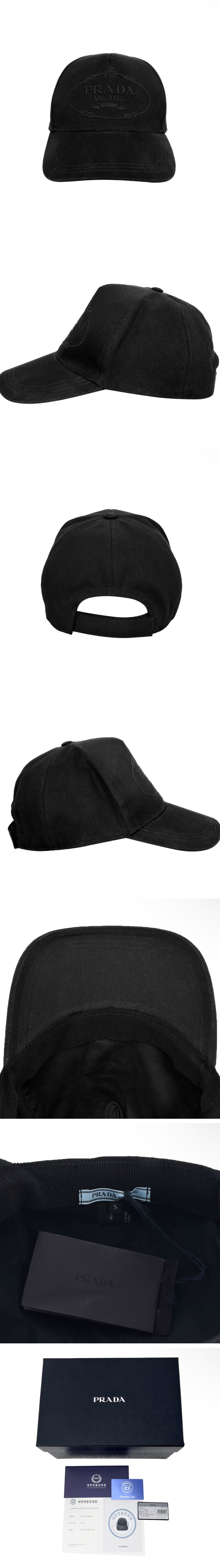 프라다 엠브로이드 자수 로고 코튼 베이스볼 볼캡 블랙