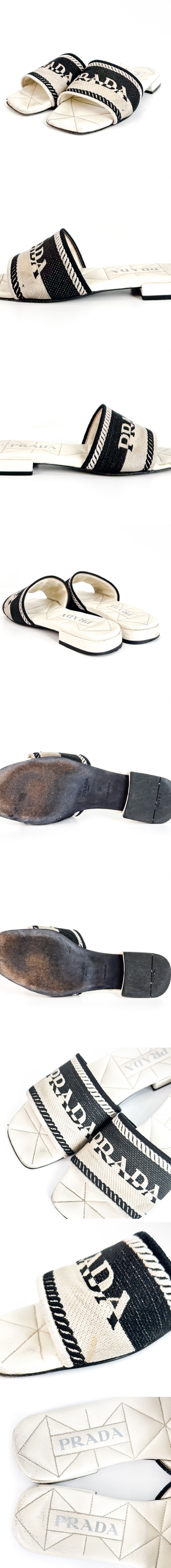 Prada Women's 22ss Fabric Embroidery Logo Graphic Slide Slippers