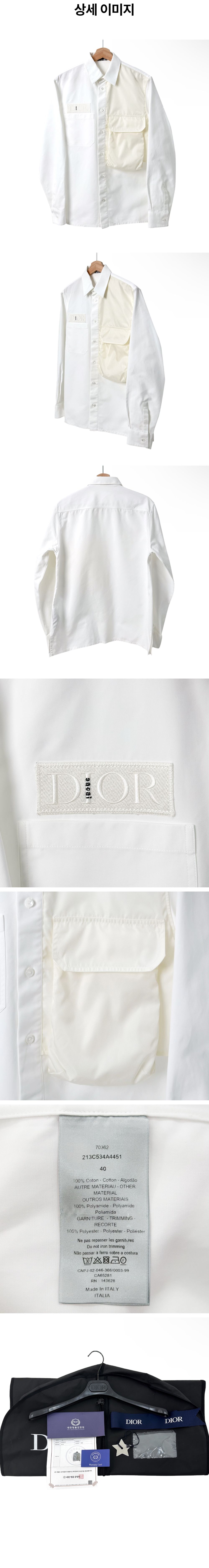 디올 x 사카이 남성 모노그램 포켓 오버 코튼 셔츠 자켓 화이트