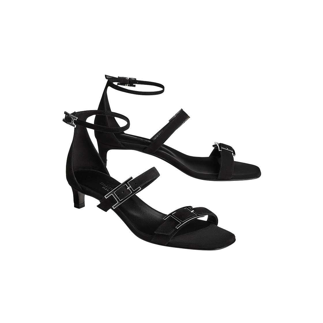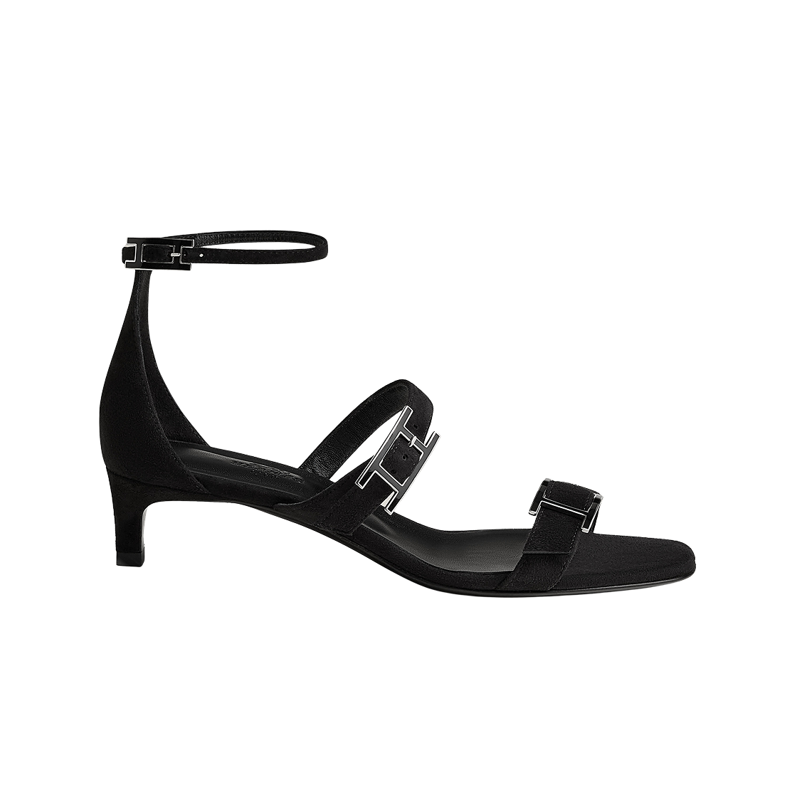 (W) Hermes Liv 40 Sandal Suede Goatskin & Palladium Noir