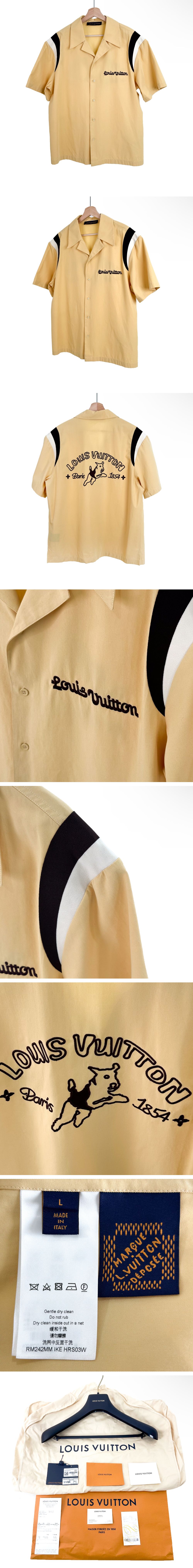 루이비통 남성 24ss 강아지 자수 반팔 코튼 볼링 셔츠