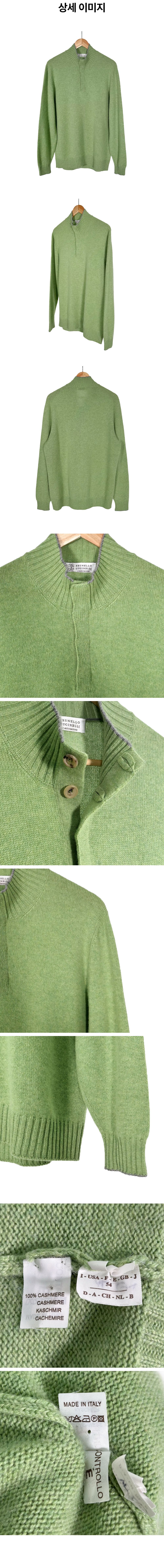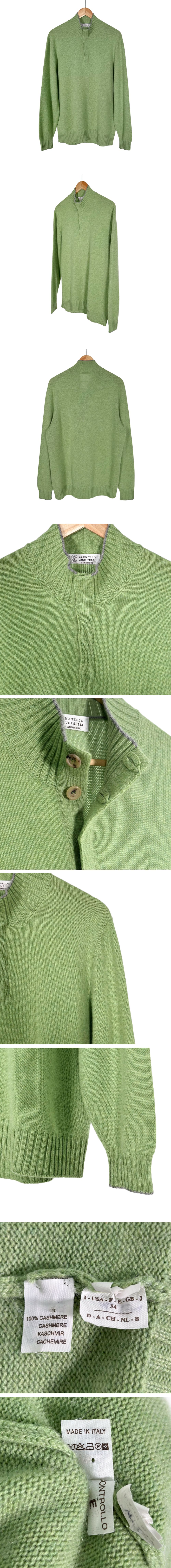 브루넬로 쿠치넬리 남성 캐시미어 하프 반집업 니트 스웨터 그린