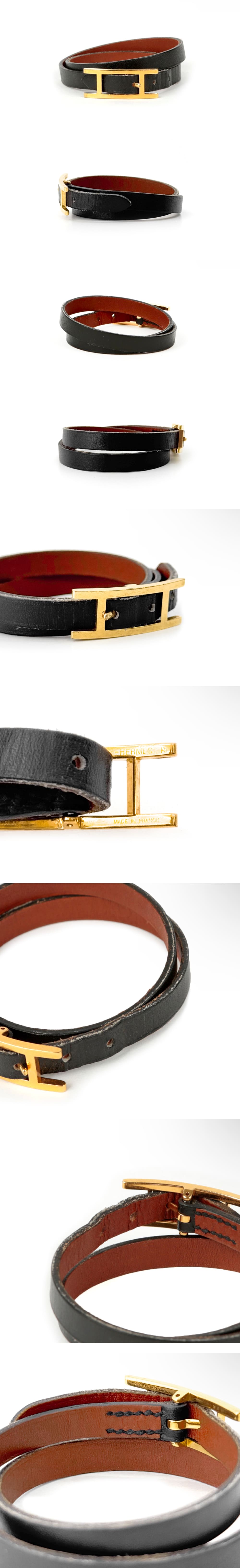 에르메스 비하피 더블 투어 레더 브레이슬릿 팔찌 금장 블랙