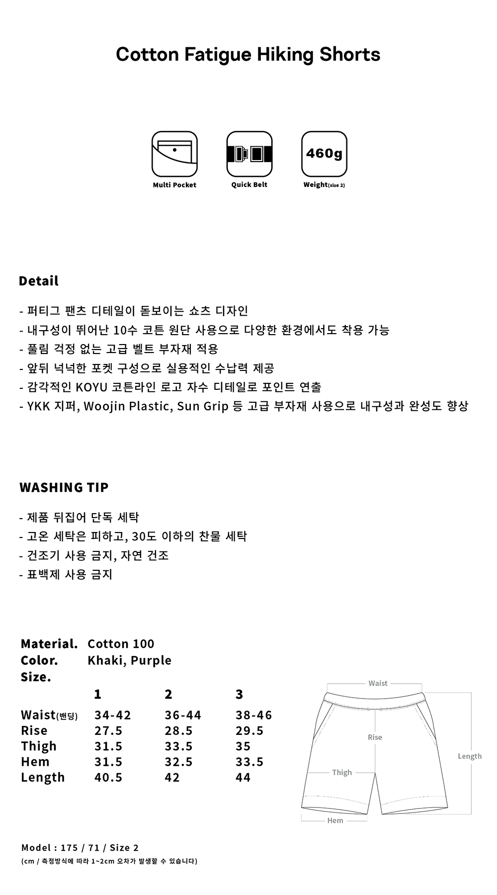 코유 코튼 퍼티그 하이킹 쇼츠 (퍼플)