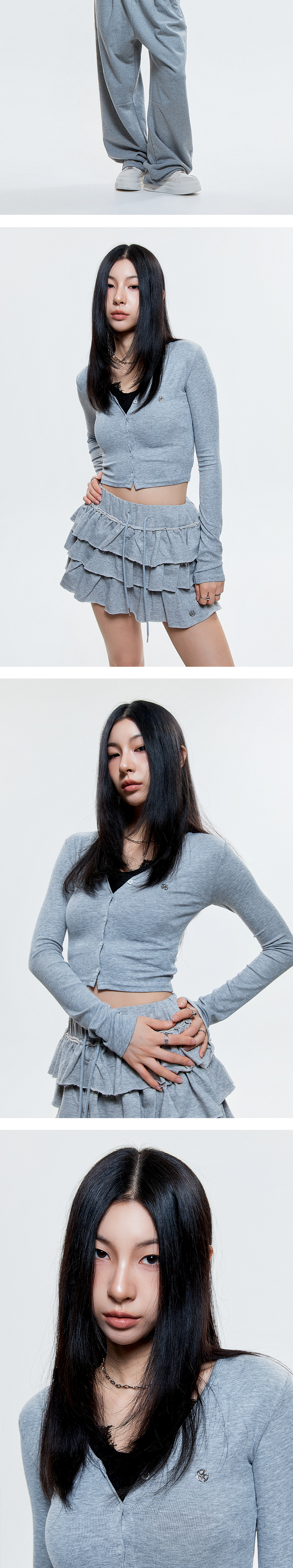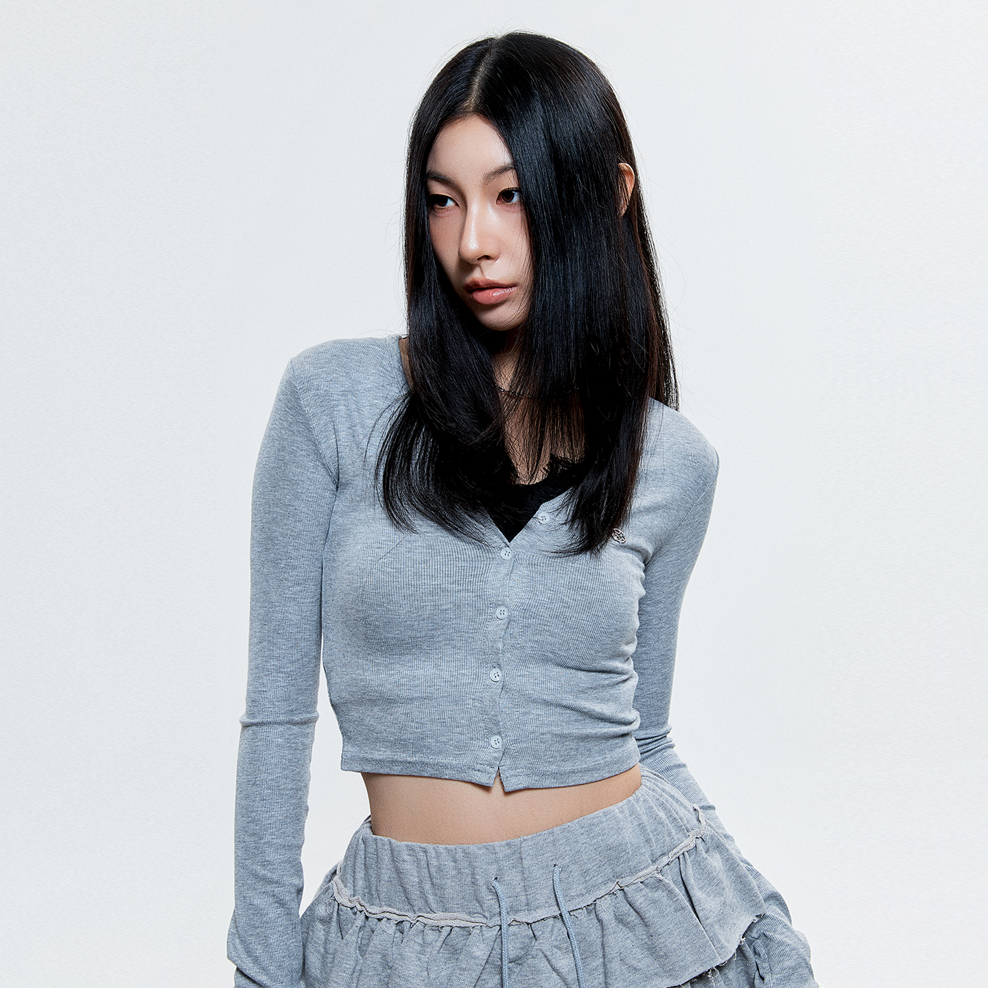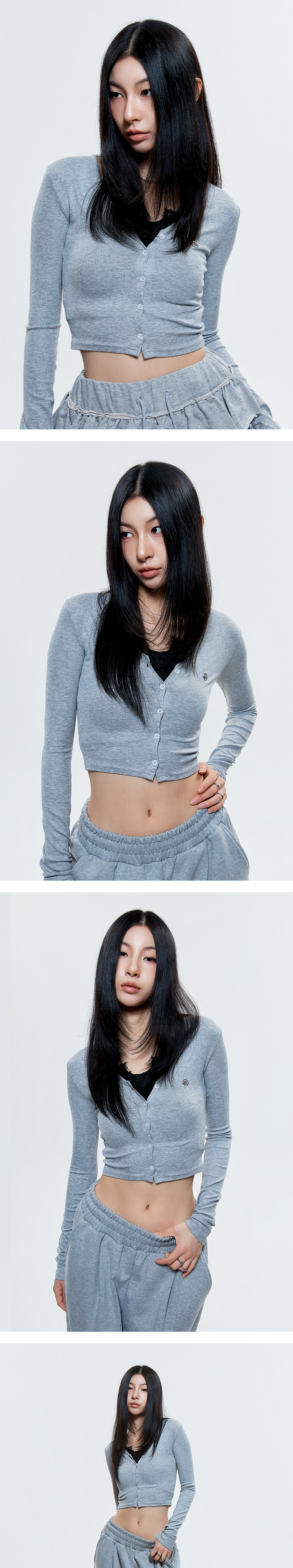 Product Description. ㆍ핏: 크롭핏 ㆍ딥한 V넥 라인에 타이트한 핏으로 바디에 밀착되는 실루엣입니다. ㆍ스판 혼방 립 원단으로 뛰어난 신축성과 착용감을 줍니다. ㆍDUC 심볼 앰블럼 포인트 ㆍ44–55까지 착용 가능한 프리 사이즈 Product Size & Info. Size : One Size Color : Black, Gray Material : Rayon 95%, Spandex 5% One Size : Length 39 / Shoulder 33 / Chest 31 / Hem 28 / Sleeve Length 63 Model Spec. 이주은 (One Size 착용) Height : 170cm / Top : XS-S / Bottom : 26 inch Washing Tip. Dry cleaning + Only hand washing 드라이 클리닝 또는 손세탁을 권장하며 케어 라벨을 참고해 주세요. MADE IN KOREA.