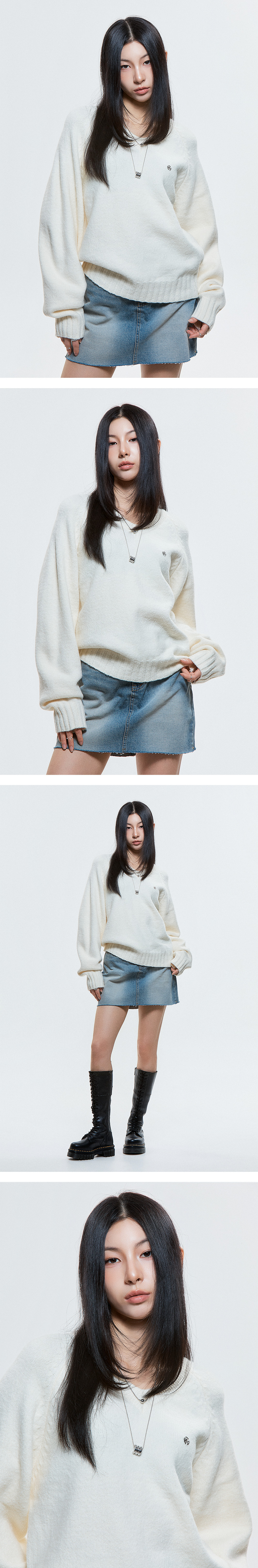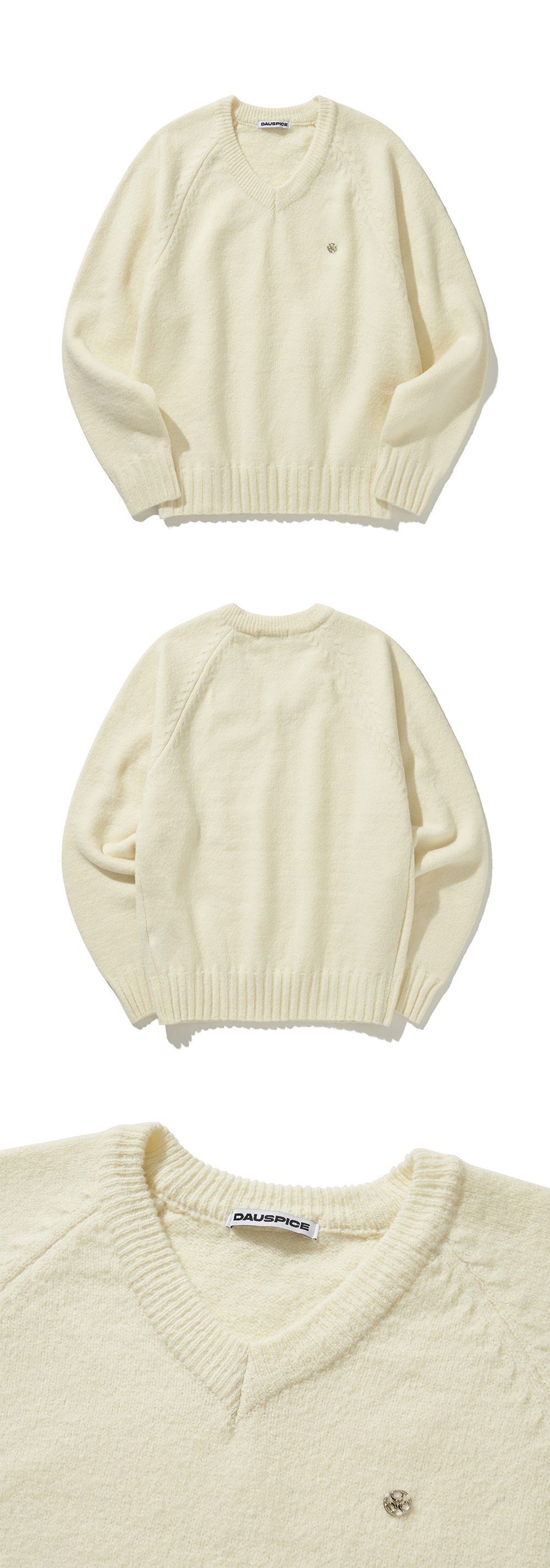 Product Description. ㆍ핏: 세미 크롭핏 ㆍ브이넥 라인에 여유로운 라글란 실루엣으로 데일리하게 착용하기 좋습니다. ㆍDUC 심볼 앰블럼 포인트 ㆍ모든 체형 착용 가능한 프리 사이즈 Product Size & Info. Size : One Size Color : Black, Ivory Material : Acrylic 70%, Polyurethane 27%, Spandex 3% One Size : Length 63 / Shoulder 50 / Chest 54 / Sleeve Length 53 Model Spec. 이주은 (One Size 착용) Height : 170cm / Top : XS-S / Bottom : 26 inch Washing Tip. Dry cleaning + Only hand washing 드라이 클리닝 또는 손세탁을 권장하며 케어 라벨을 참고해 주세요. MADE IN KOREA.