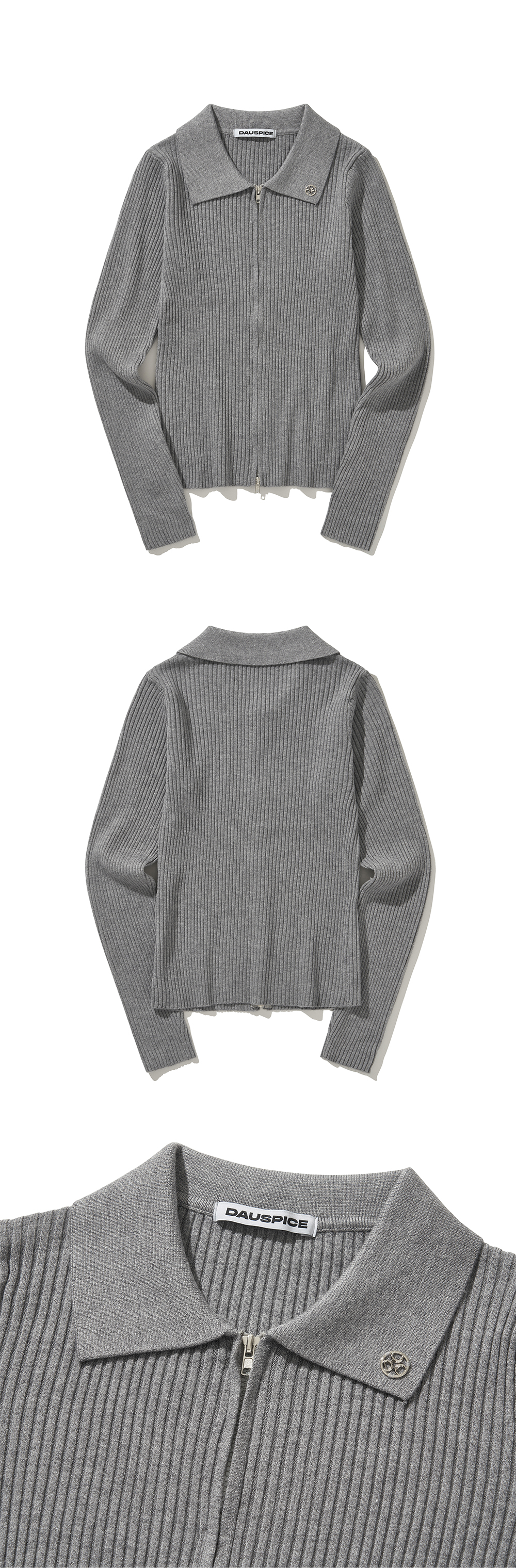 Product Description. ㆍ핏: 세미 크롭핏 ㆍ2way 지퍼로 다양한 레이어드 연출이 가능합니다. ㆍ스판과 울 혼방으로 부드러운 터치감과 착용감을 줍니다. ㆍDUC 심볼 앰블럼 포인트 ㆍ44–55까지 착용 가능한 프리 사이즈 Product Size & Info. Size : One Size Color : Black, Gray Material : Acrylic 45%, Polyester 35%, Wool 15%, Spandex 5% One Size : Length 50 / Shoulder 30 / Chest 34 / Hem 32 / Sleeve Length 56 Model Spec. 이주은 (One Size 착용) Height : 170cm / Top : XS-S / Bottom : 26 inch Washing Tip. Dry cleaning + Only hand washing 드라이 클리닝 또는 손세탁을 권장하며 케어 라벨을 참고해 주세요. MADE IN KOREA.