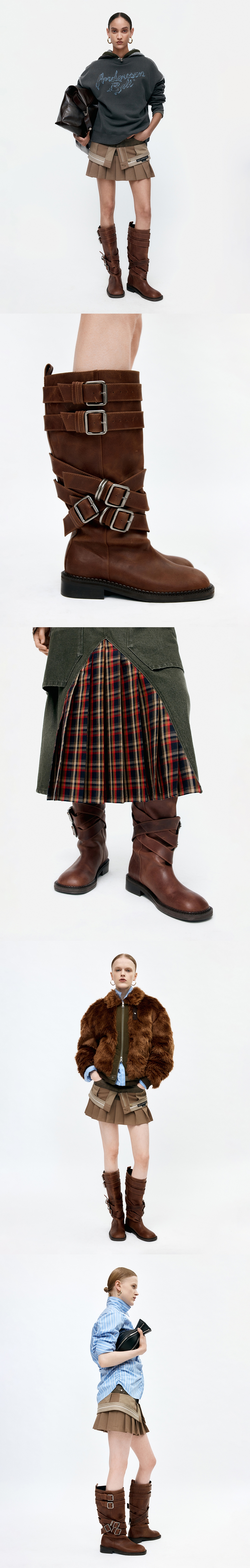 ADSB 앤더슨벨 레이어드 스트랩 부츠 브라운