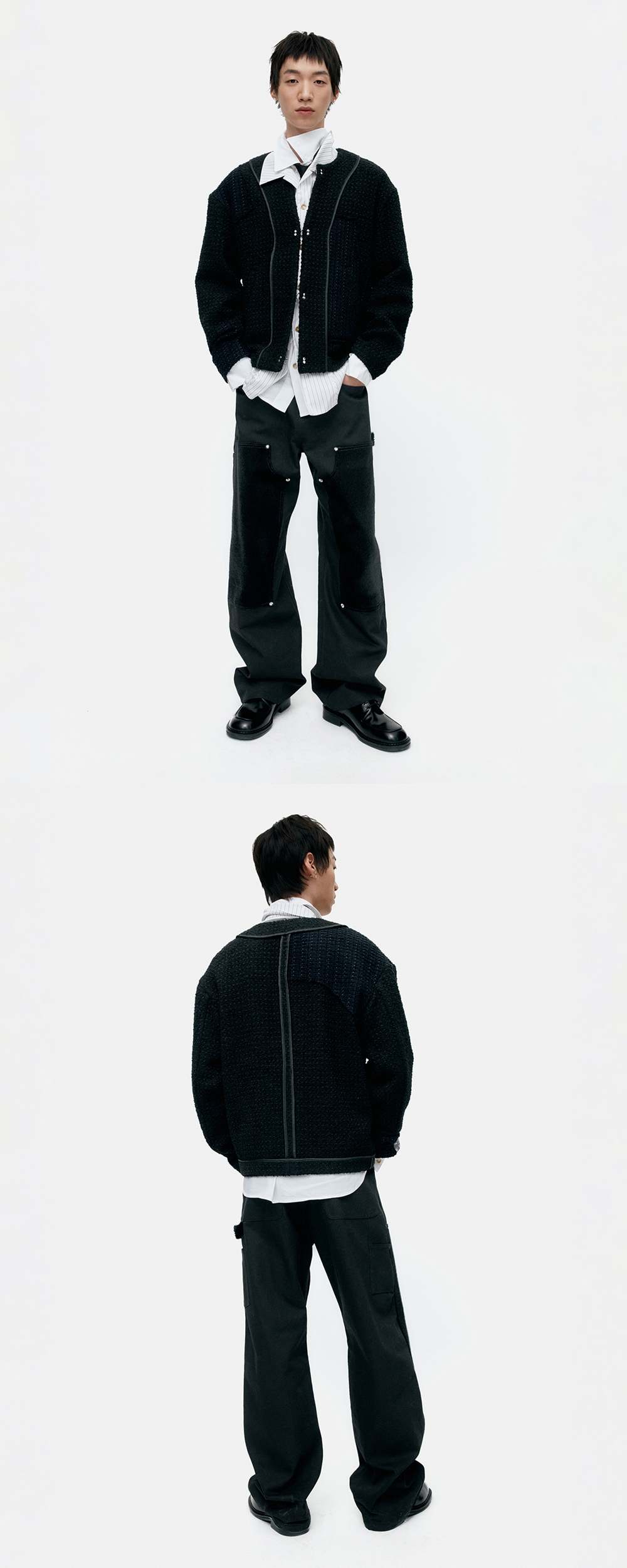 ADSB 앤더슨벨 유니섹스 인사이드 아웃 트위드 가디건 블랙
