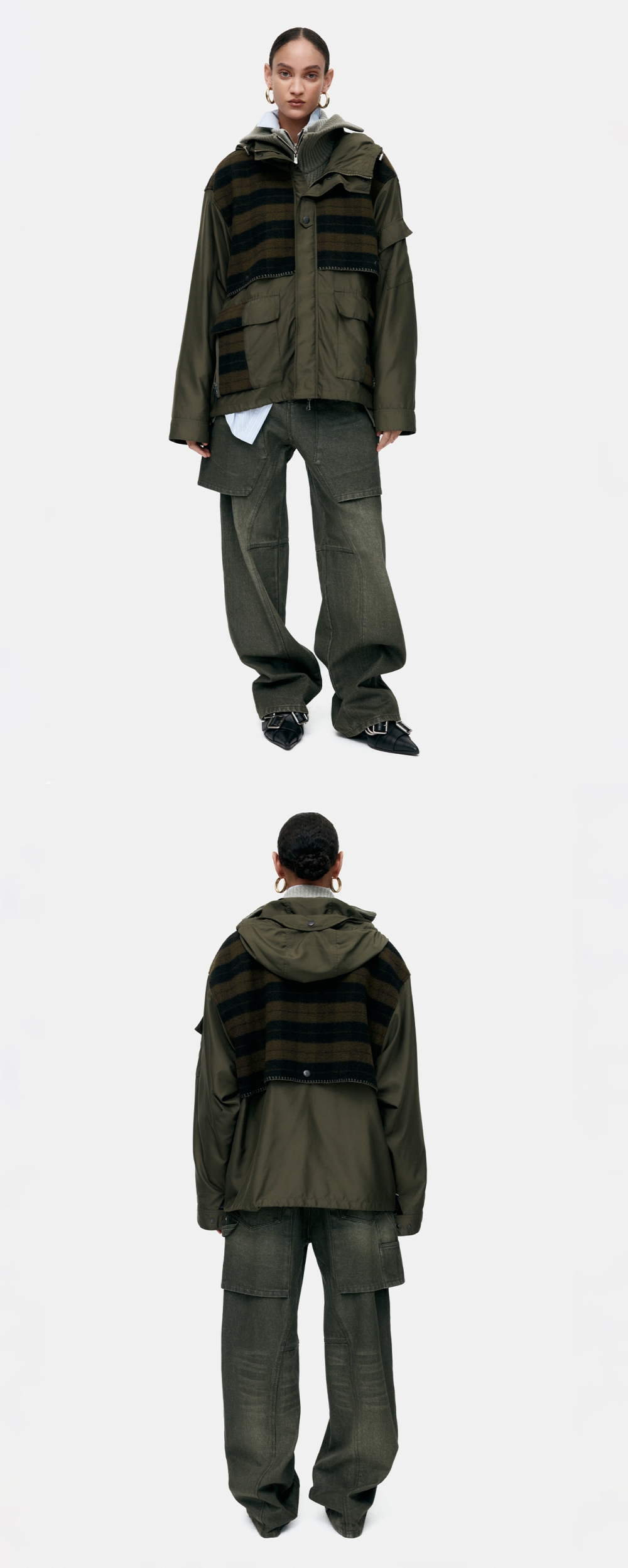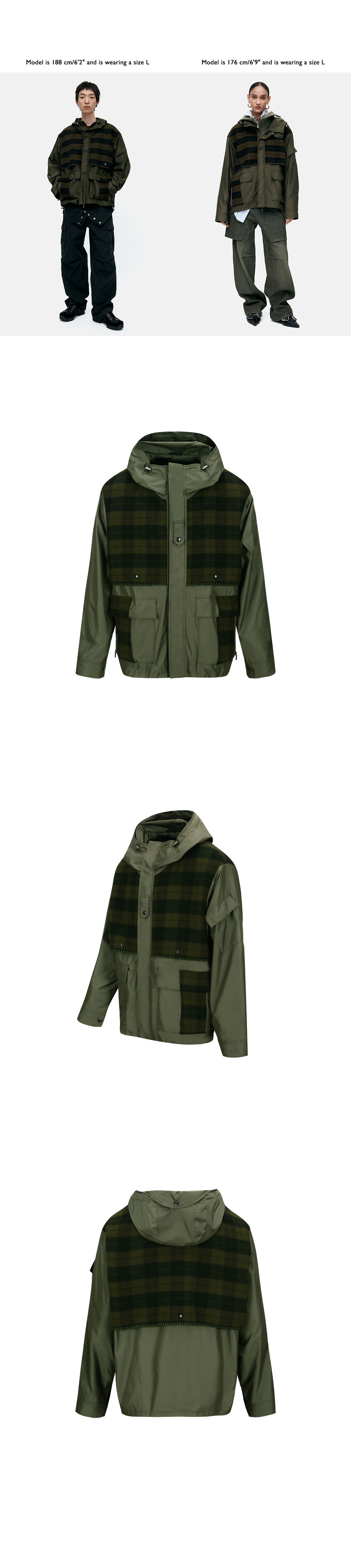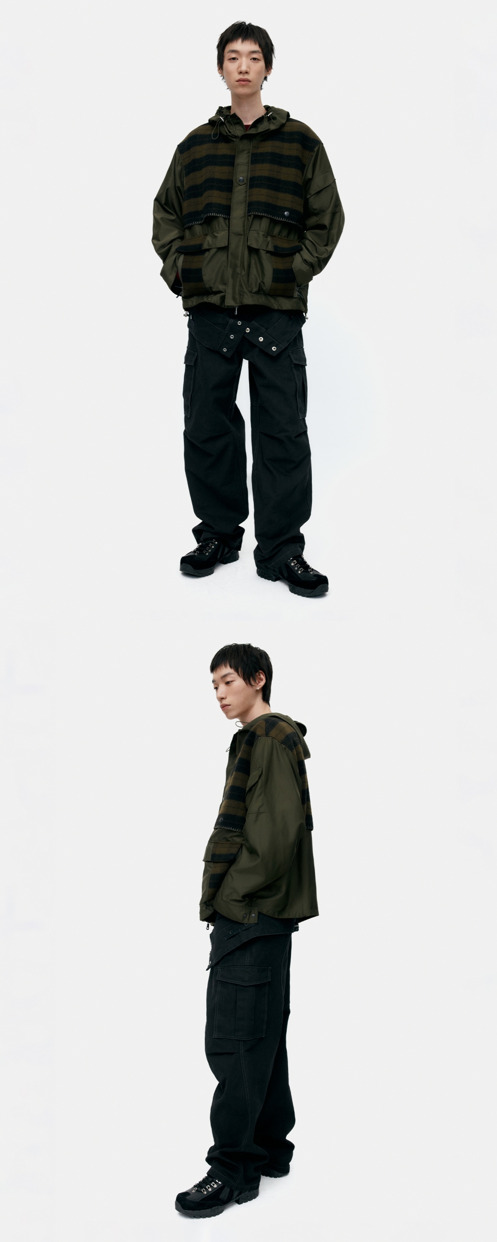 ADSB 앤더슨벨 유니섹스 체크 레이어드 점퍼 카키
