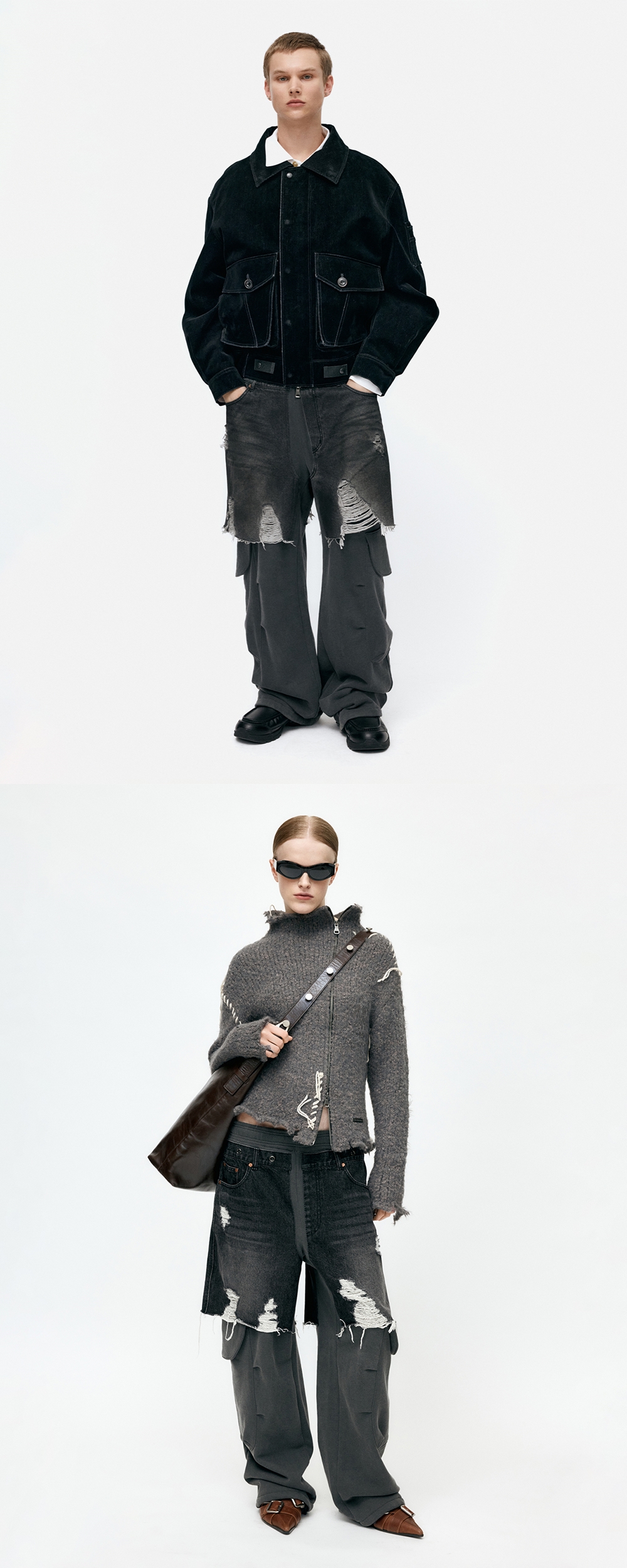 ADSB 앤더슨벨 유니섹스 러기드 데님 인셋 스웻팬츠 블랙