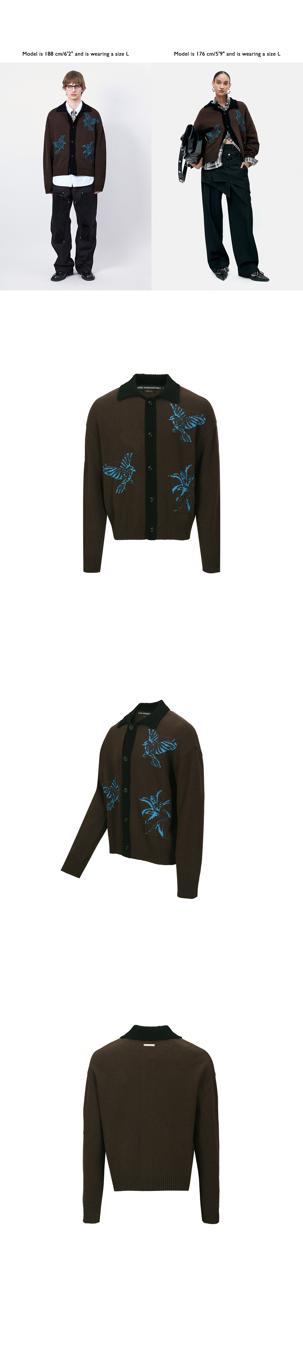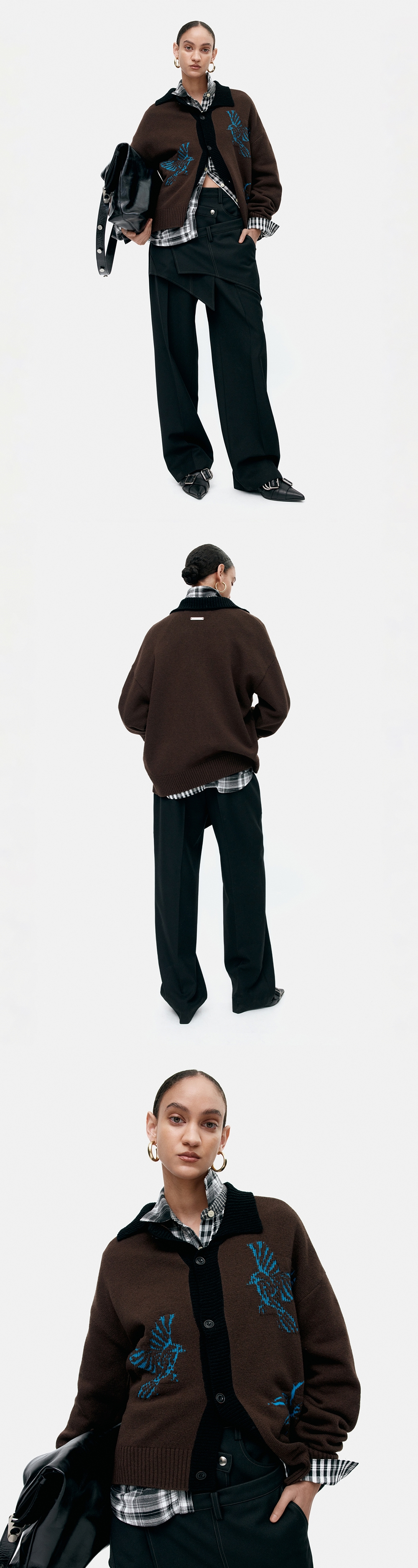ADSB ANDERSSON BELL Unisex Bird Intarsia Cardigan Brown