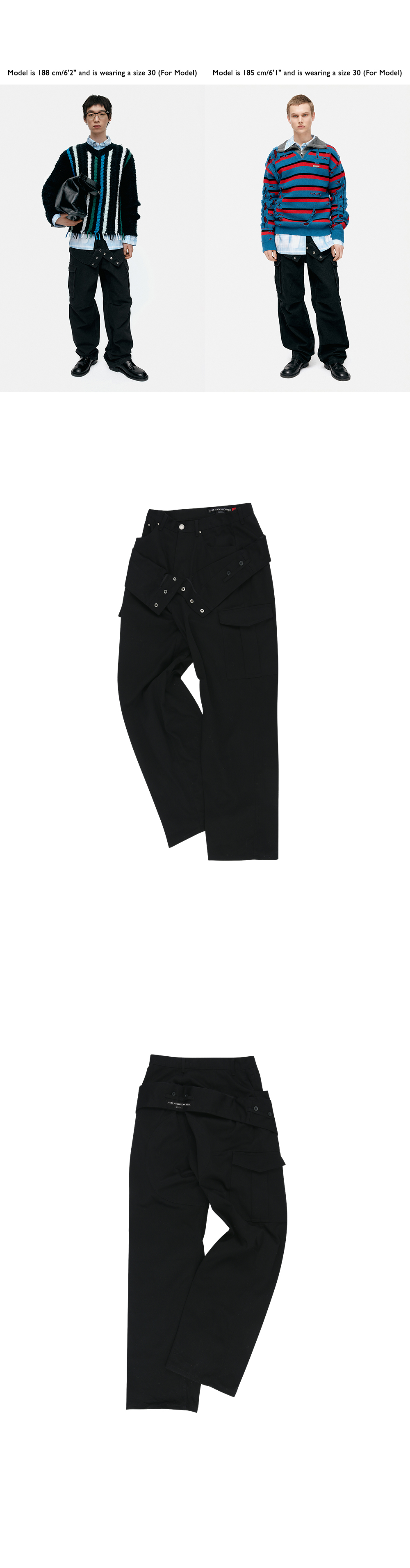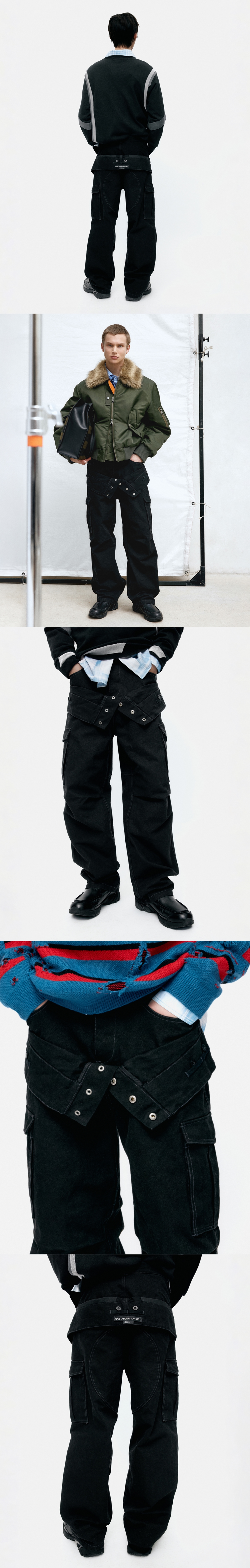 ADSB 앤더슨벨 유니섹스 더블 웨이스트 워크 와이드레그 진 블랙