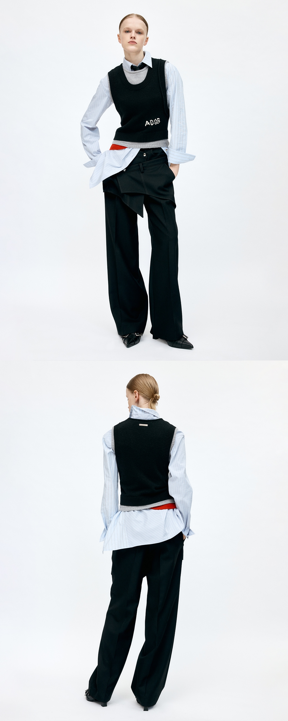 ADSB 앤더슨벨 트레스 레이어드 슬리브리스 탑 블랙
