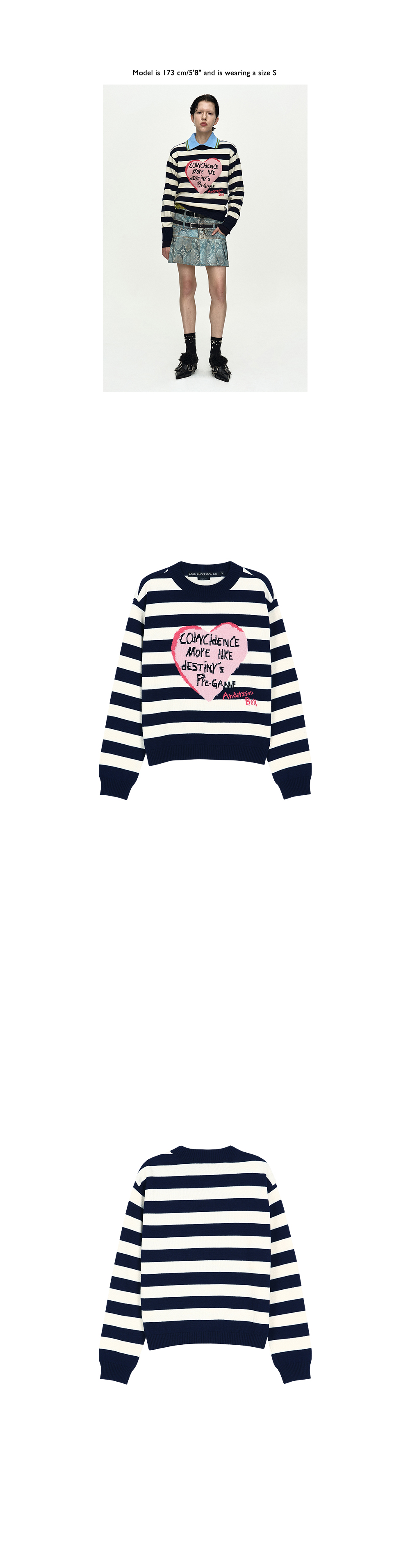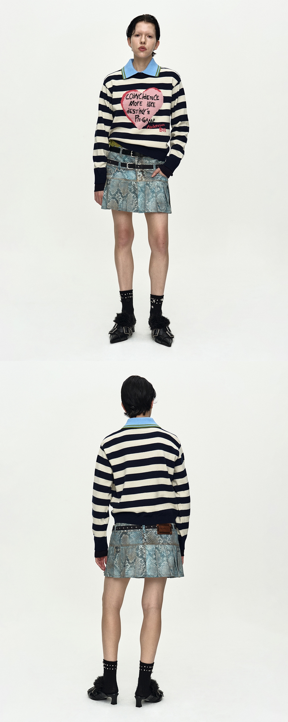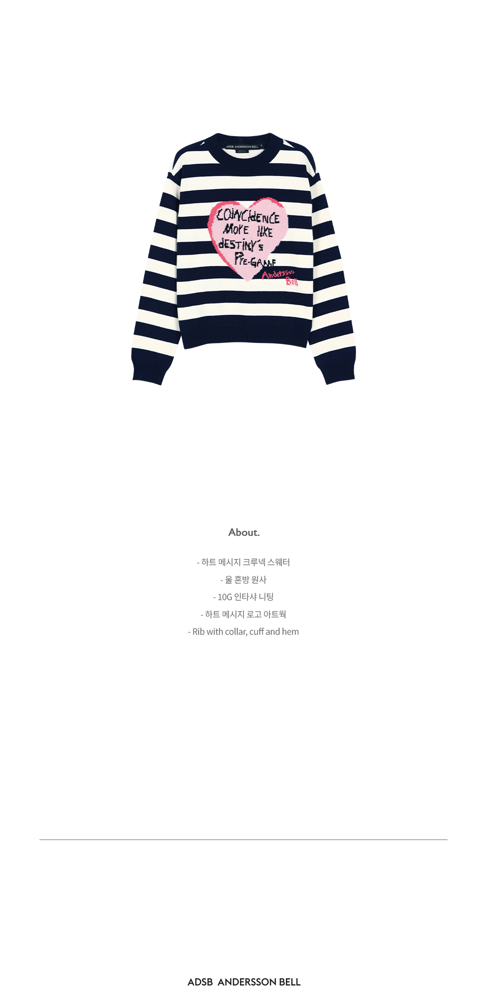 ADSB 앤더슨벨 걸즈 하트 메세지 크루넥 스웨터 네이비 아이보리