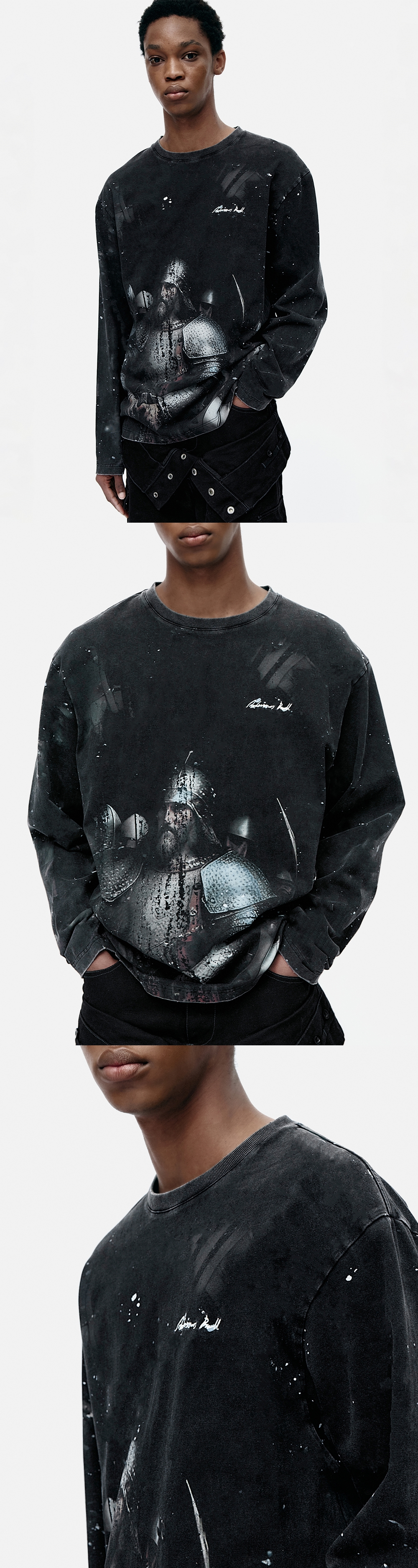 ADSB ANDERSSON BELL Unisex Knight Printed Long Sleeve T-Shirt Charcoal