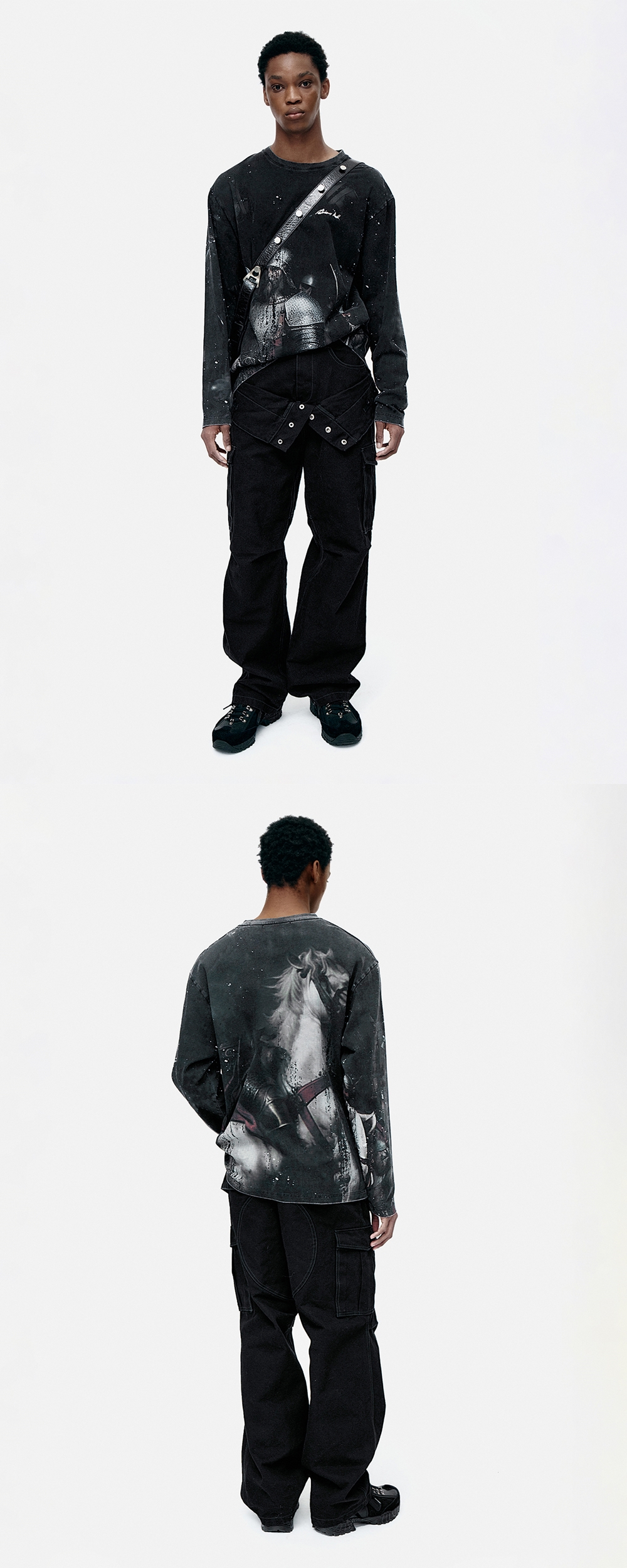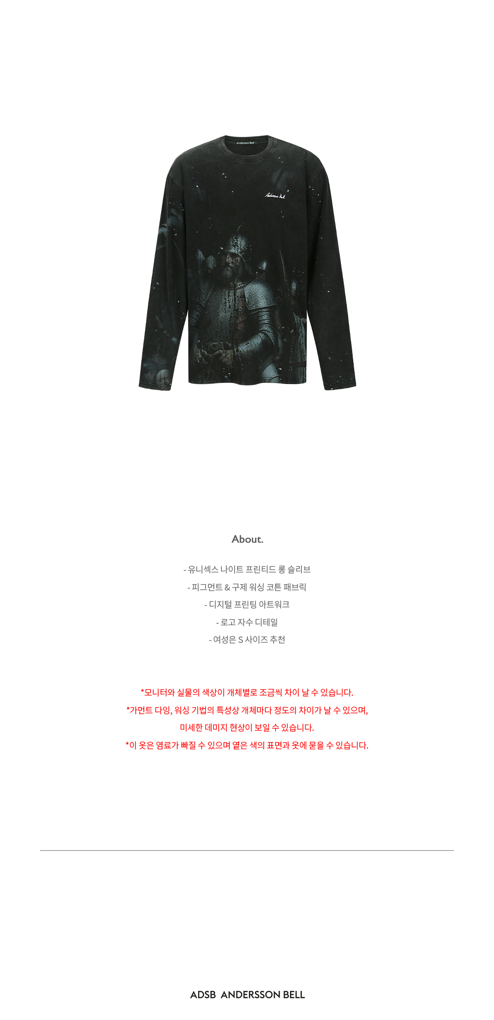 ADSB 앤더슨벨 유니섹스 나이트 프린티드 롱슬리브 티셔츠 차콜