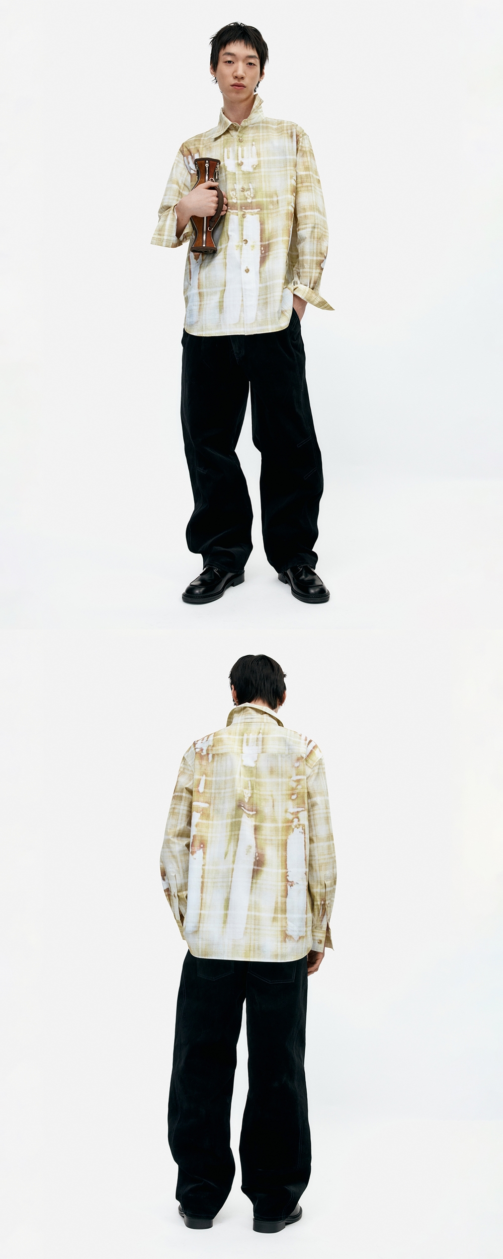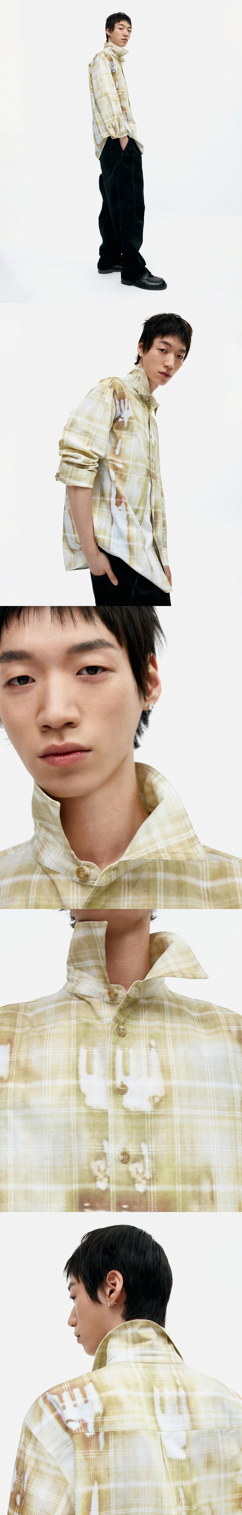 ADSB 앤더슨벨 트롱프뢰유 프린트 체크 셔츠 옐로우
