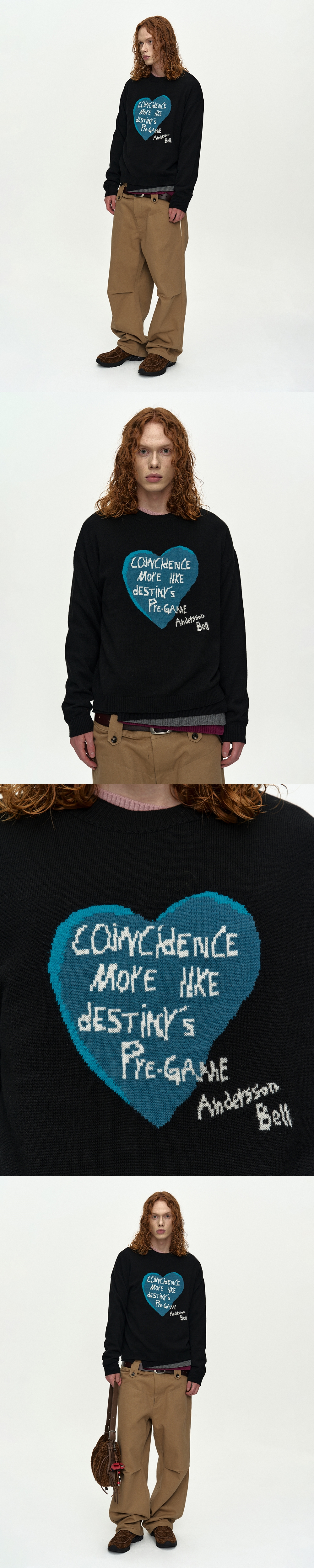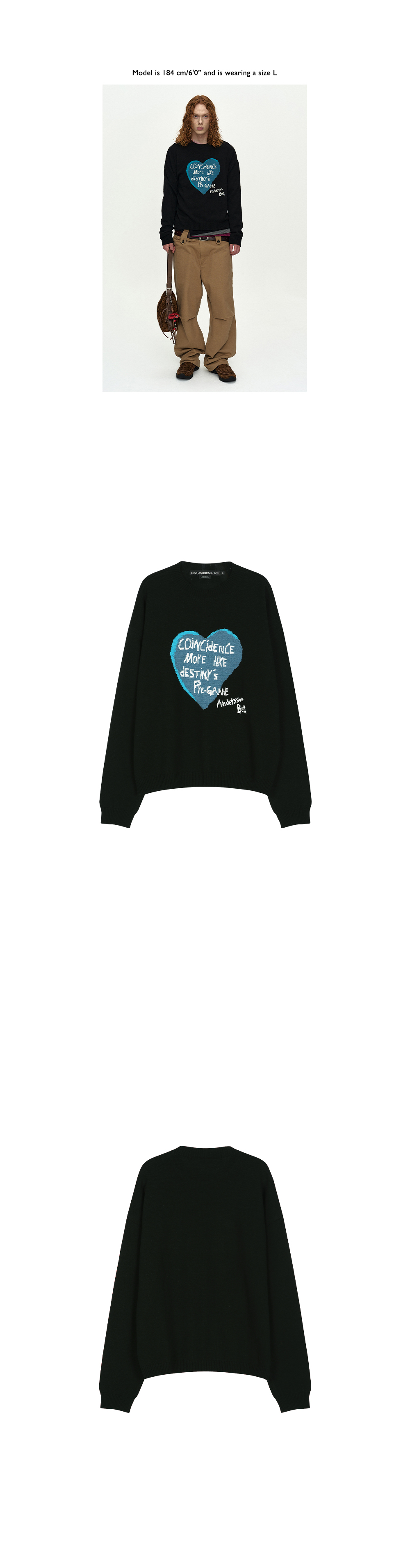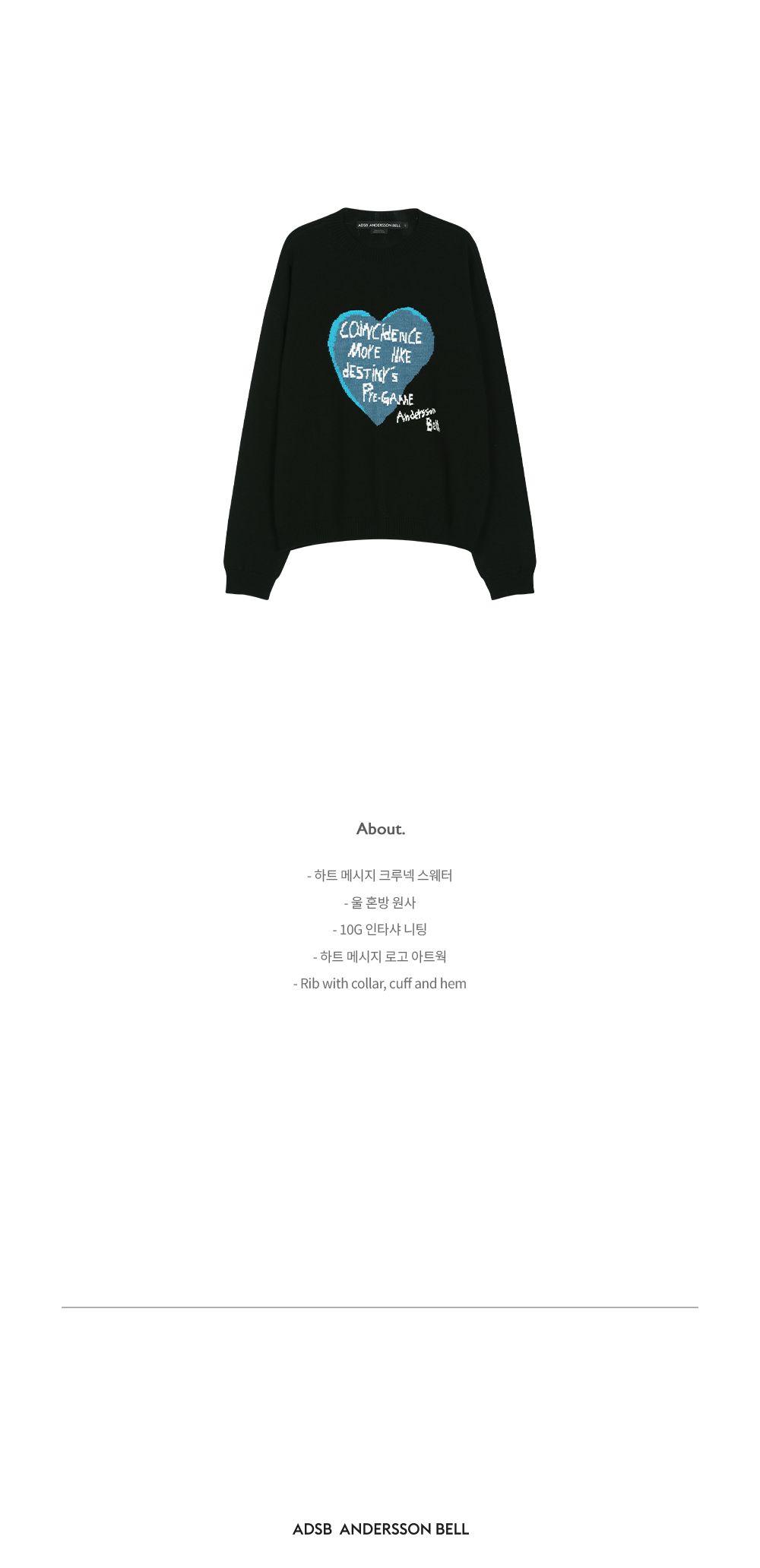 ADSB 앤더슨벨 보이즈 하트 메세지 크루넥 스웨터 블랙