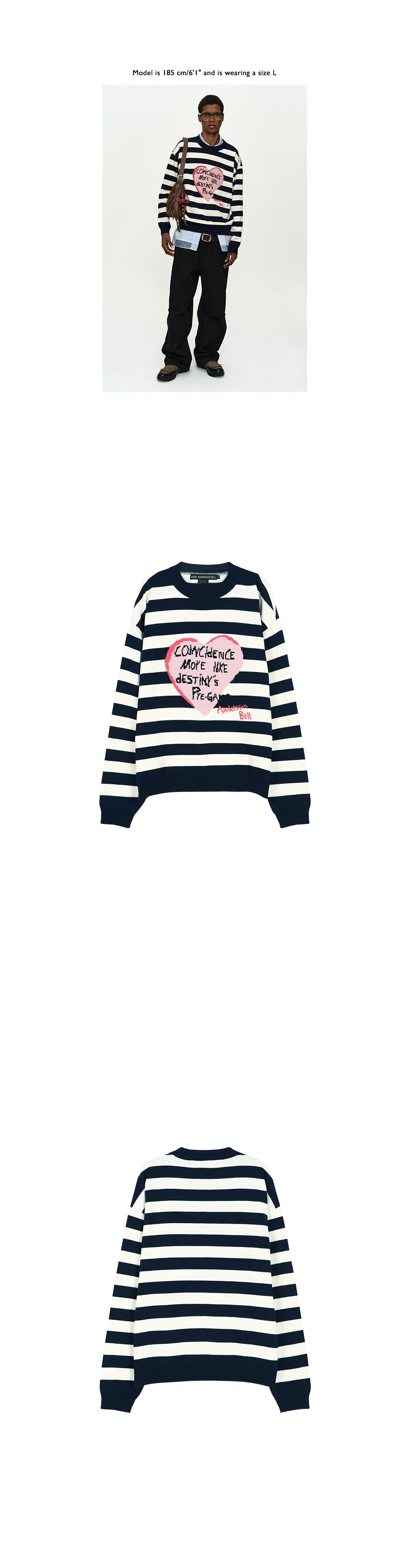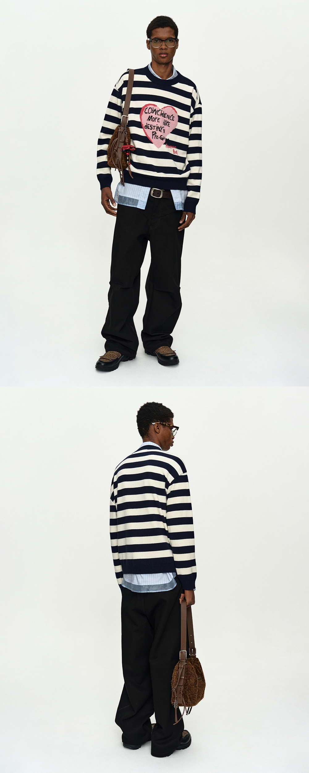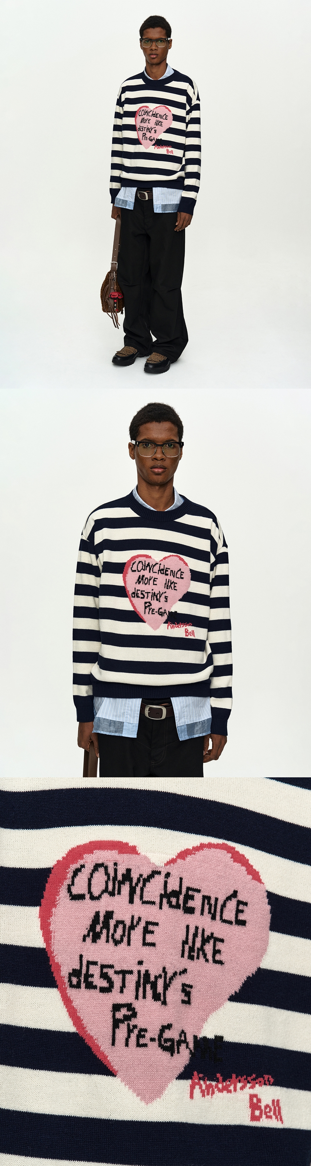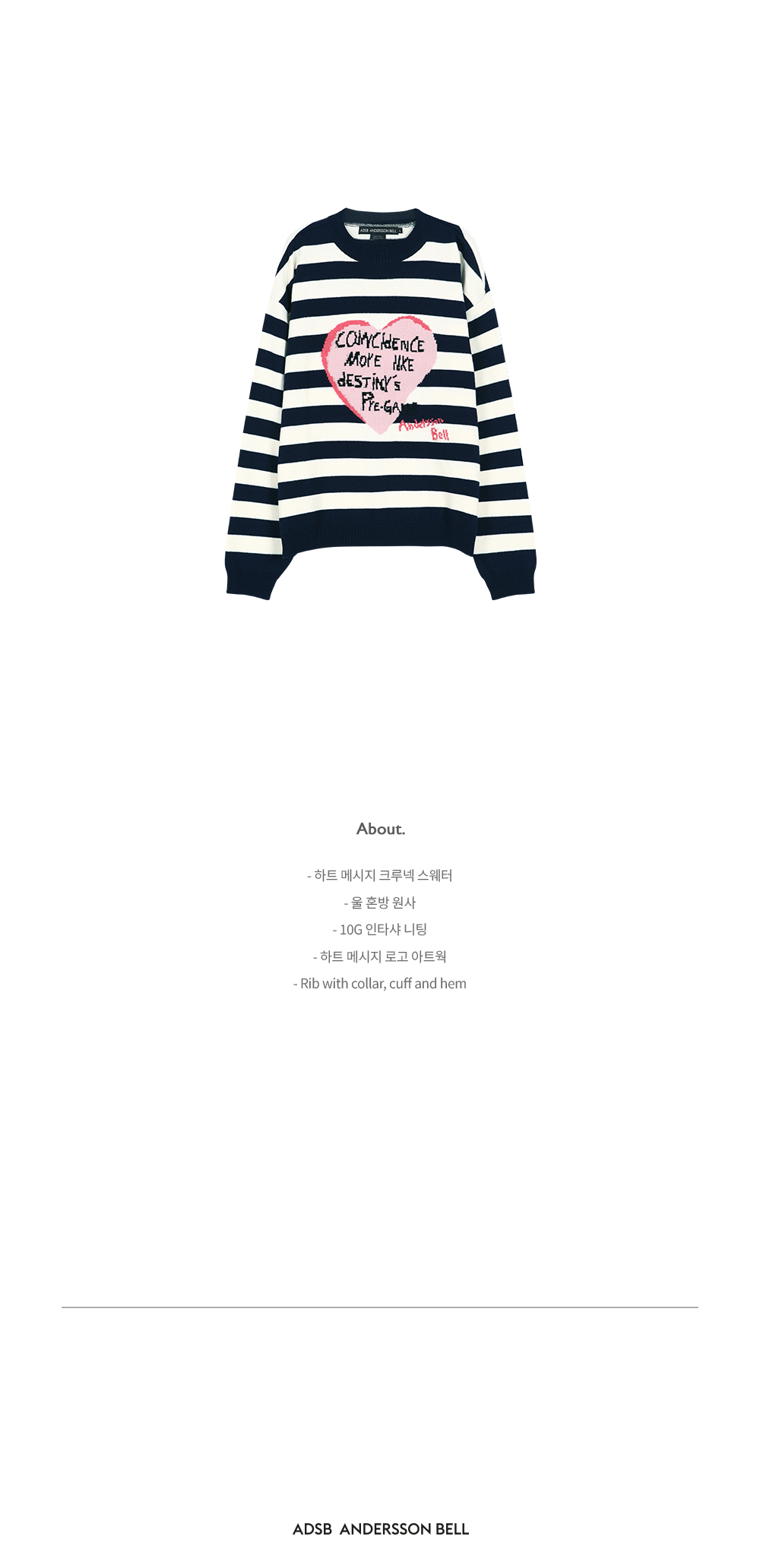 ADSB 앤더슨벨 보이즈 하트 메세지 크루넥 스웨터 네이비 아이보리