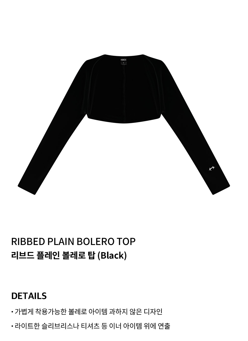 에이치덱스 리브드 플레인 볼레로 탑 블랙