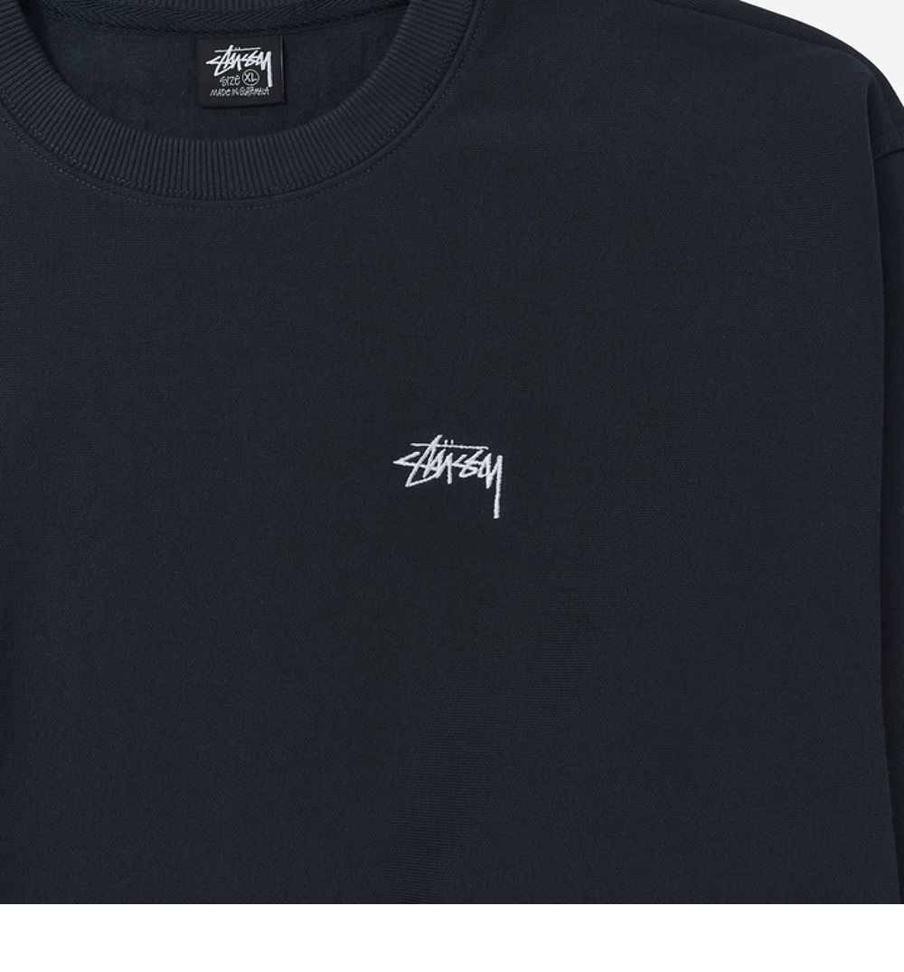 스투시 스탁 로고 크루넥 네이비