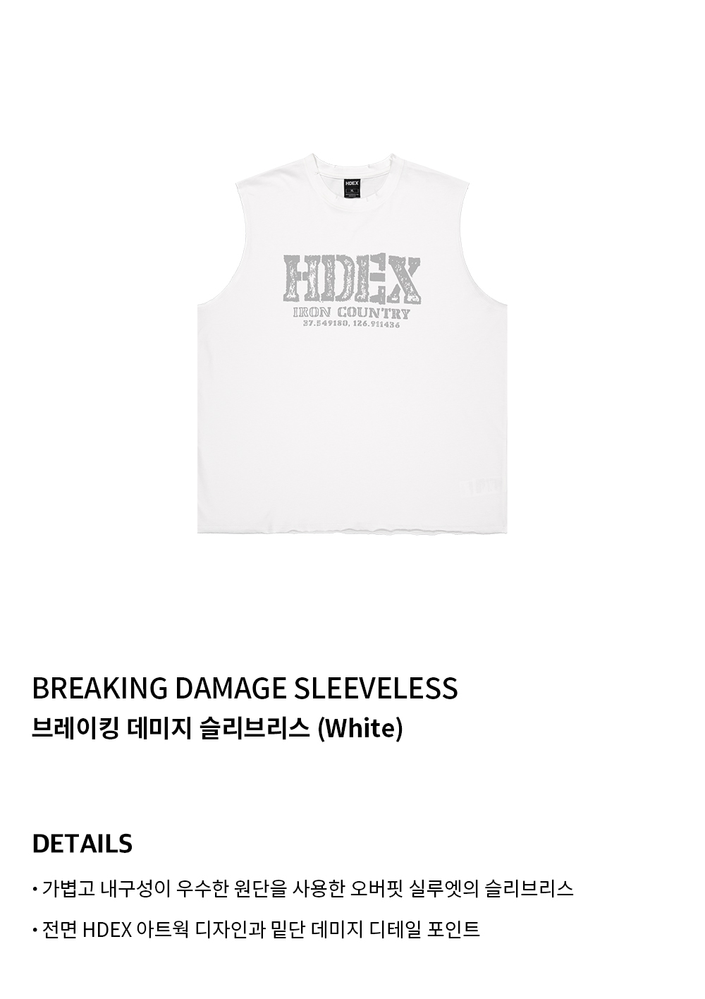 에이치덱스 브레이킹 데미지 슬리브리스 화이트