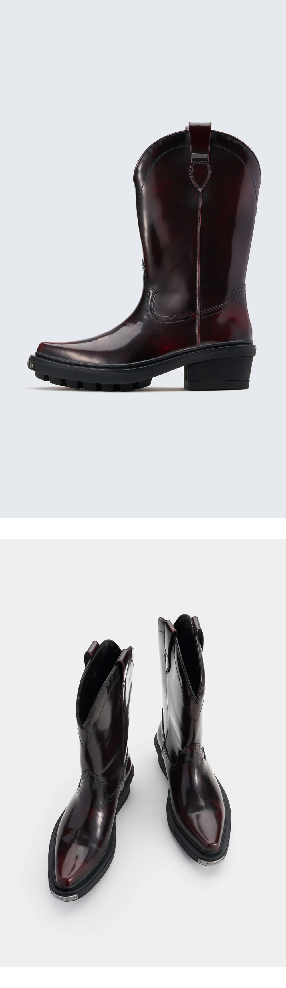 빈티지 웨스턴 무드를 현대적으로 재해석한 이티스 닷지 레더 옥스블러드입니다. - 유려하게 뻗은 포인티드 토 실루엣과 광택감 있는 투톤 가죽이 특징임 - 러버 소재의 트랙터 솔이 적용되어 견고한 접지력을 제공함 - 양 사이드 풀탭으로 손쉬운 착용이 가능함 - 가죽 안감과 메모리폼 인솔이 더해져 편안한 착화감을 완성함 - 겉감: 소가죽, 안감: 송아지가죽 / 코튼 * 이 제품은 앞코가 뾰족하고 보강된 디자인으로 다소 슬림하게 느껴질 수 있음. 여유 있는 착용감을 선호한다면 한 사이즈 크게 선택하시길 권장함