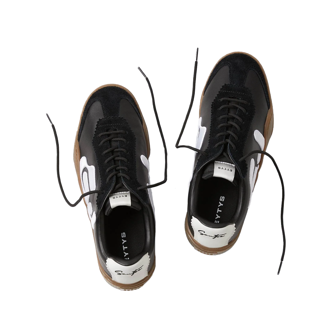 70년대 애슬레틱 슈즈를 현대적으로 재해석한 모델인 이티스 산토스 레더 블랙입니다. - 부드러운 블랙 가죽에 실키한 스웨이드 토 범퍼를 더함 - 지그재그 트리밍과 새틴 양각 로고 자수로 마무리되었음 - 슬림한 실루엣의 로우 프로파일 러버 아웃솔을 사용함 - 겉감: 소가죽 / 소가죽 스웨이드 / 나일론, 안감: 코튼 / 합성피혁