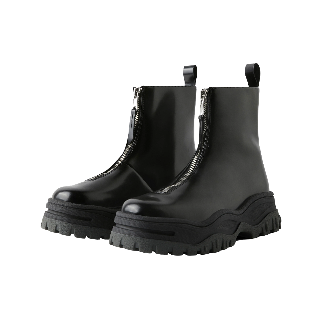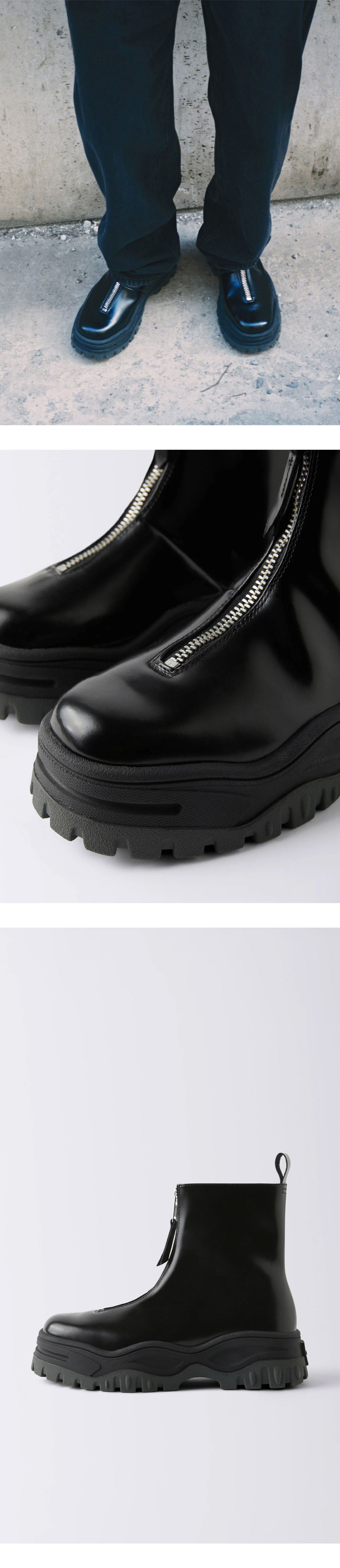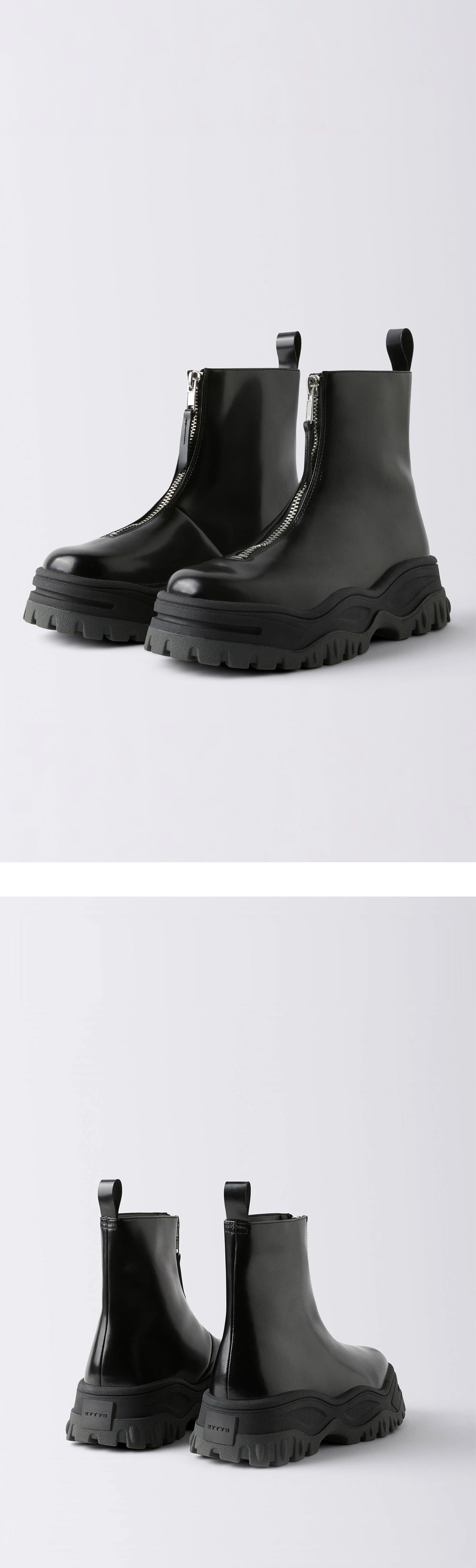 광택감 있는 블랙 가죽으로 제작된 이티스 레이븐 리 레더 블랙입니다. - 전면에 위치한 헤비듀티 실버 지퍼와 세련된 쉐입의 샤프트가 특징 - 지퍼 클로저 - 힐 칼라에 풀 루프 디테일 - 텍스처 러버 플랫폼 미드솔 - 트레드 러버 아웃솔 - 겉감: 소가죽, 안감: 송아지가죽 / 코튼