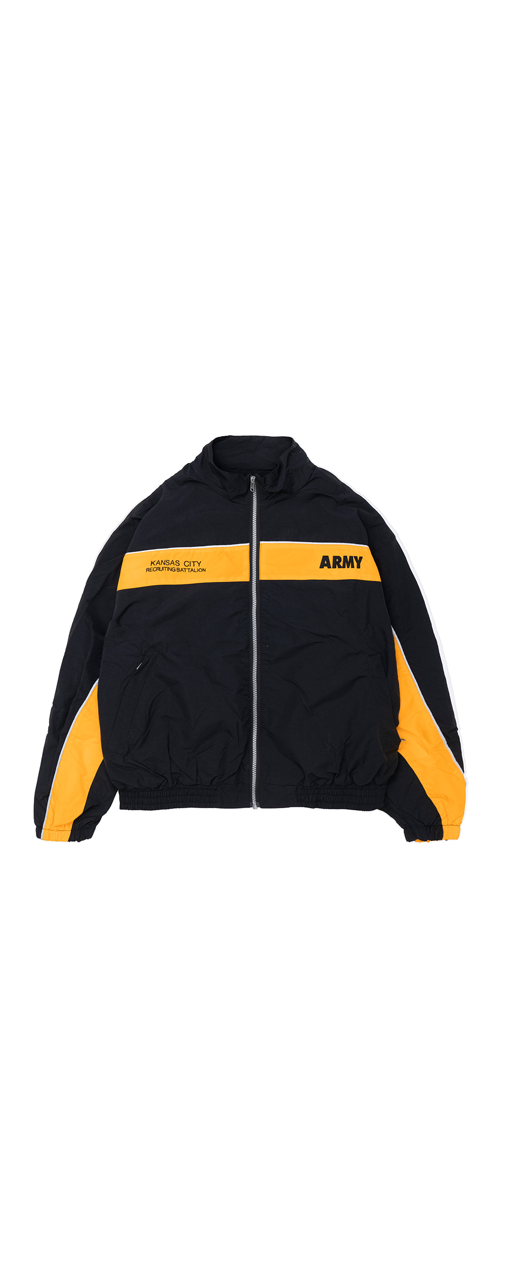 YMCL KY US ARMY Recruiter Jacket - Black 'Recruiter Jacket'은 신병 모집 활동 시 착용되었던 재킷입니다. 그 중 Kansas City 모델을 채택하여 재현하였습니다. 트레이닝에 적합한 속건성과 투습성이 뛰어난 소재가 채용되고 있습니다. 그리고 통기성이 우수한 매쉬 소재의 라이너로 이루어져 있습니다. 후면부까지 반사 소재를 사용하여 안정성은 높이고 있습니다. 특징인 등의 ARMY 로고의 자수나 원단, 레스큐 오렌지 컬러의 라인과 반사 소재 등을 충실하게 재현하고 있습니다. * Shell : Nylon * Mesh : Polyester * YMCL KY 는 합리적인 가격으로 제품을 제공하기 위하여 별도의 포장이 존재하지 않습니다. * 빛에 의한 제품의 색감 차이가 존재 할 수 있습니다. * Made in China