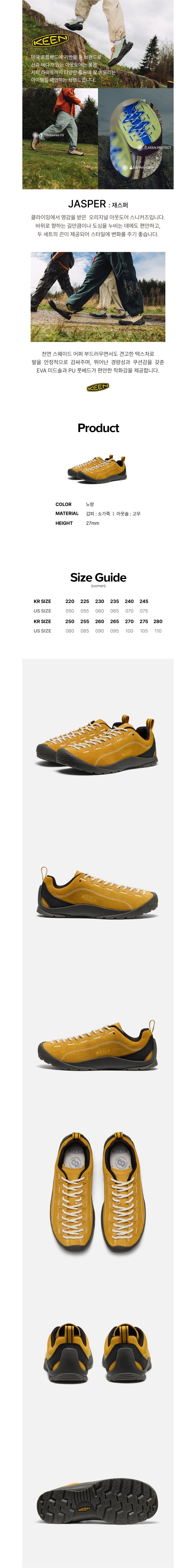 킨 재스퍼 노랑 여성 스니커즈
