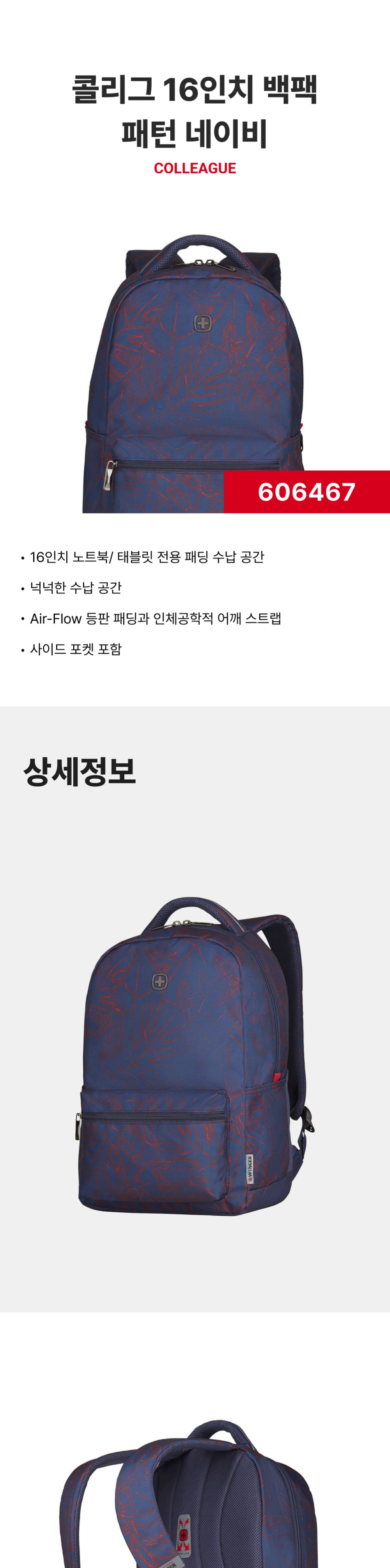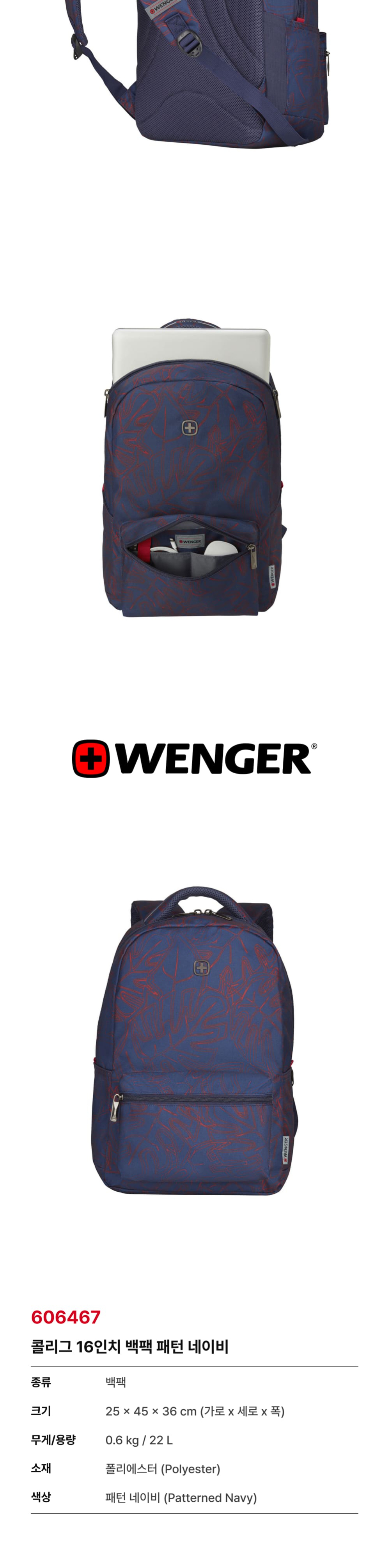 웽거 콜리어그 16인치 노트북 백팩 (태블릿 포켓 포함) 네이비