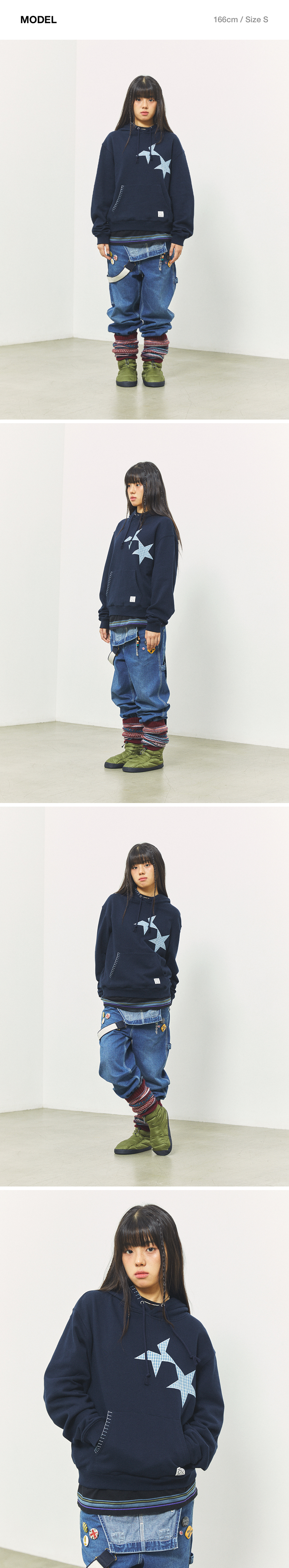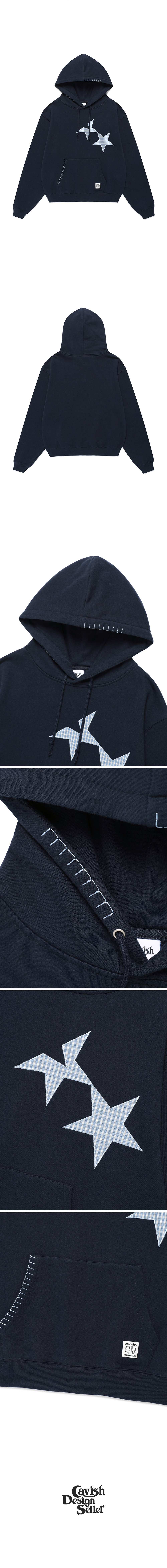 카비시 트윈 스타 아플리케 후디 네이비