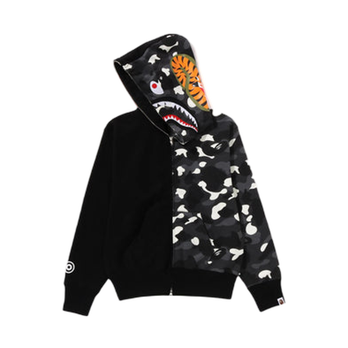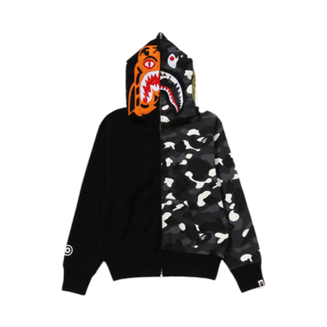 (W) 베이프 시티 카모 타이거 샤크 풀 집 후드 블랙