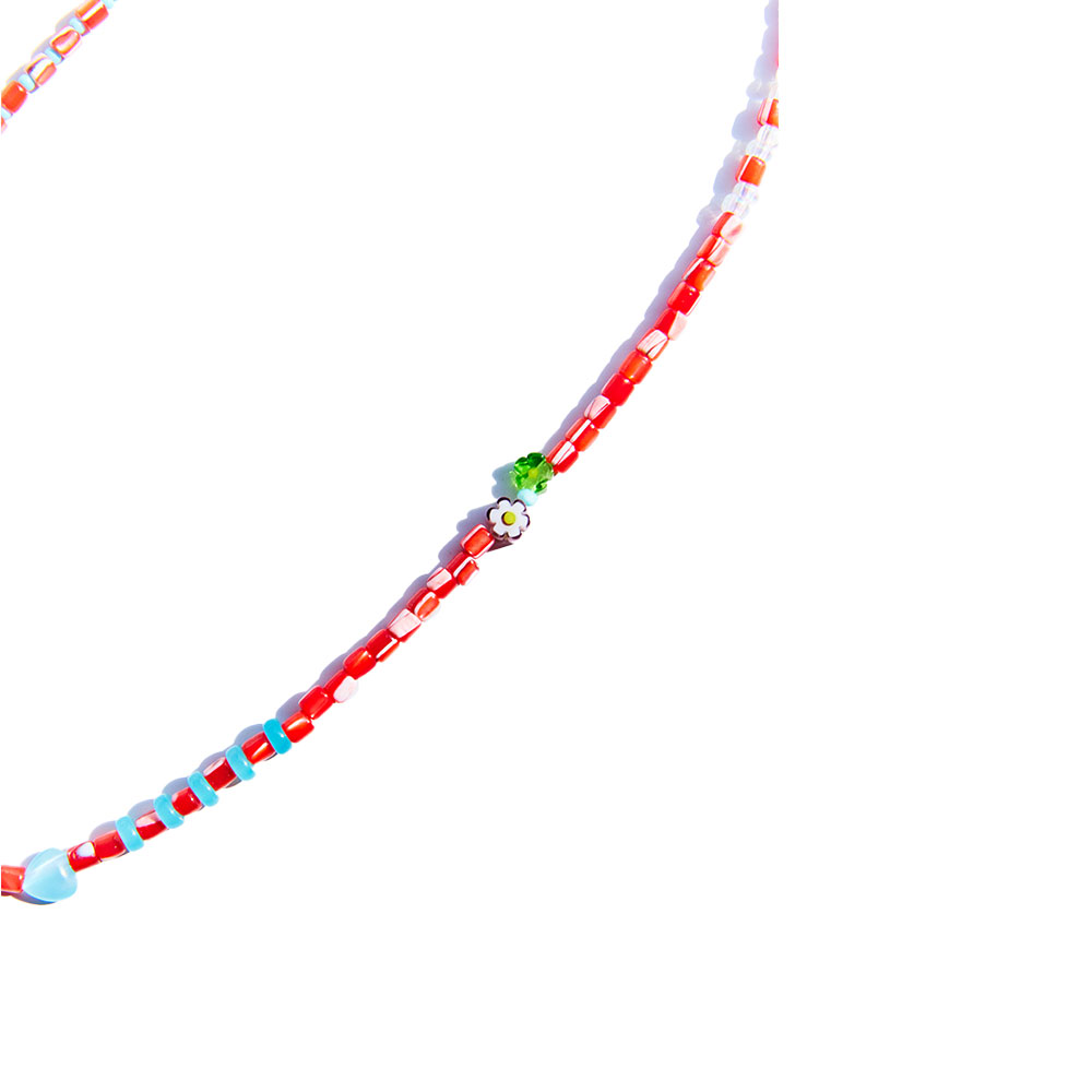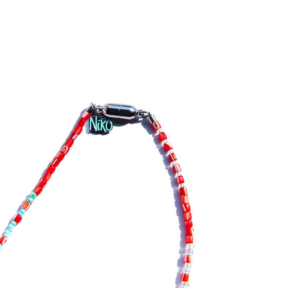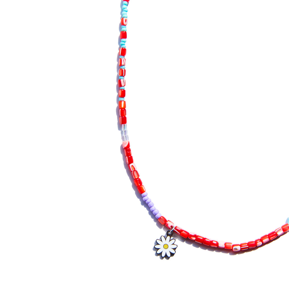 NiRO의 모든 제품은 핸드메이드로 주문후 최대 10일 이내에 걸쳐 주문제작됩니다. 짧은 길이 42cm / 긴 길이 48cm 천연 바다조개가 소재인 붉은비즈를 베이스로 만든 키치함이 돋보이는 목걸이입니다.