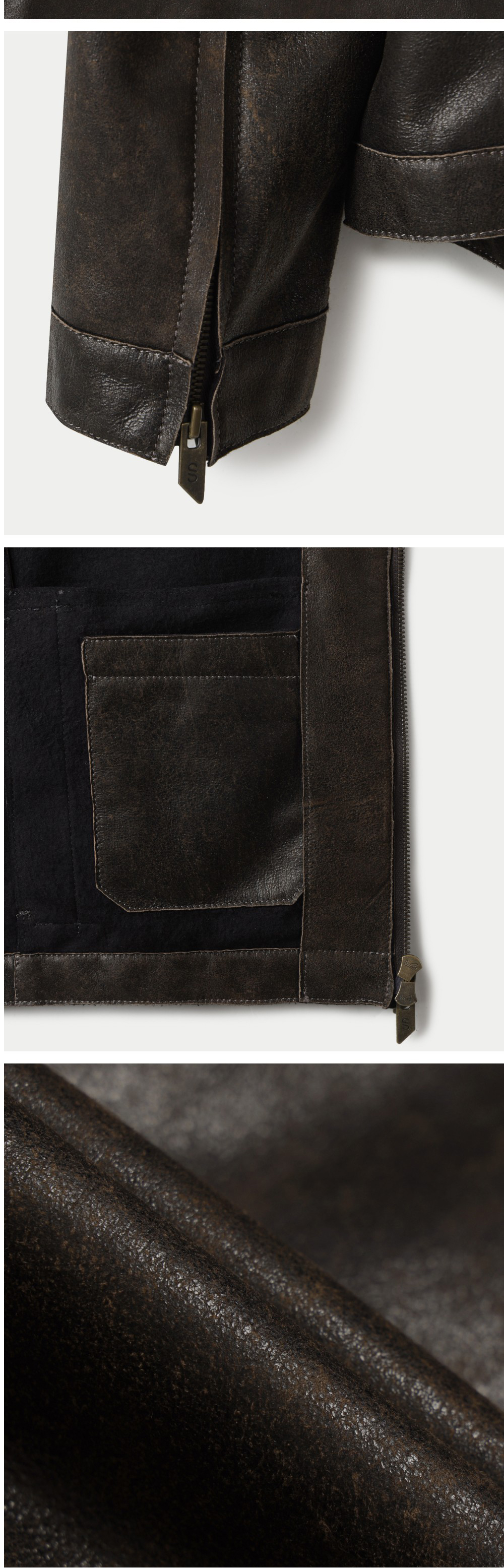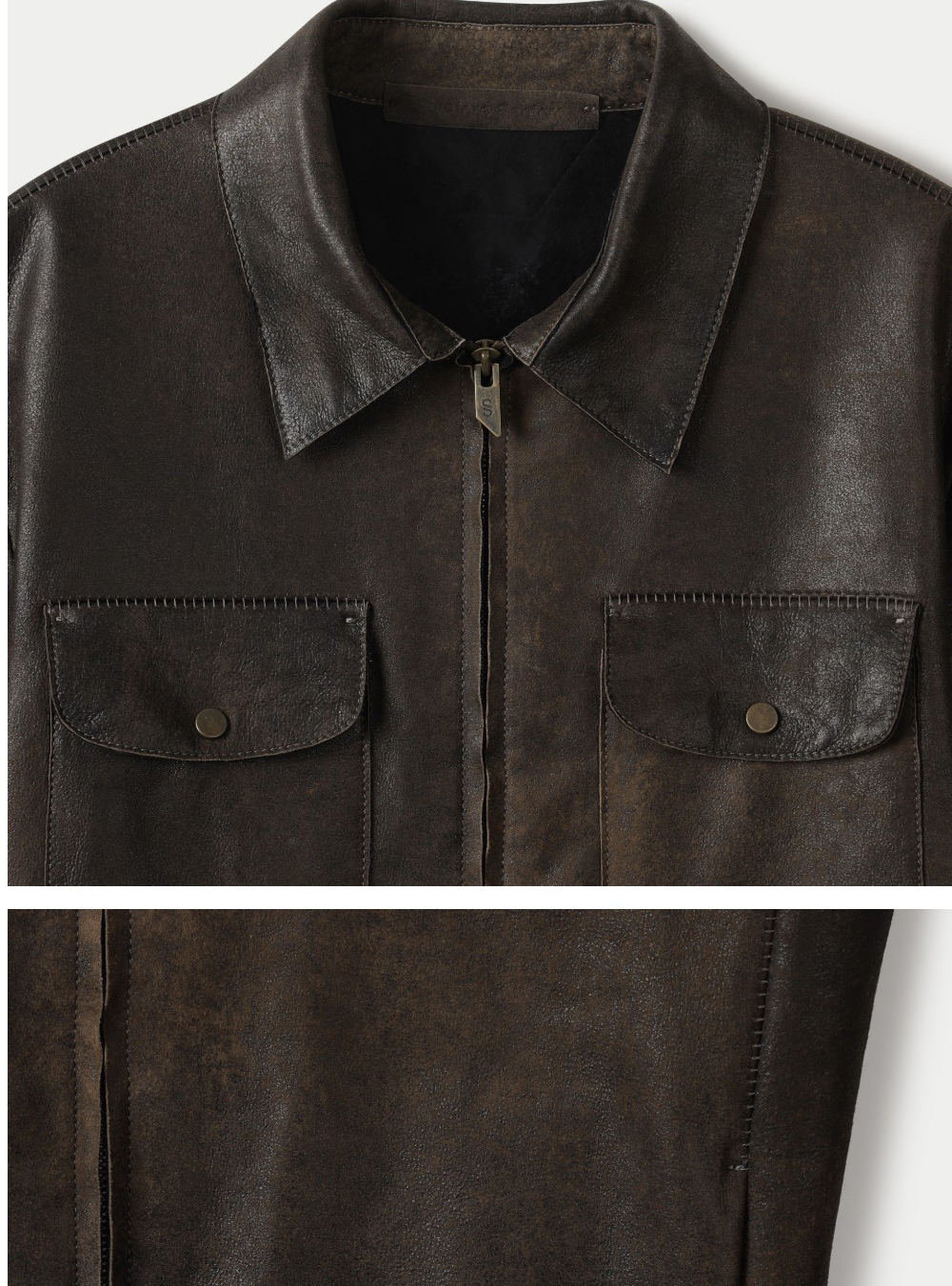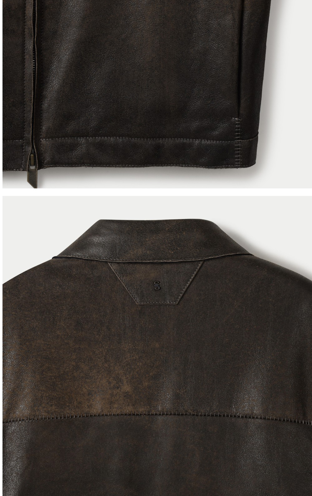 시리즈 집업 번트 베이 레더 자켓 다크 브라운