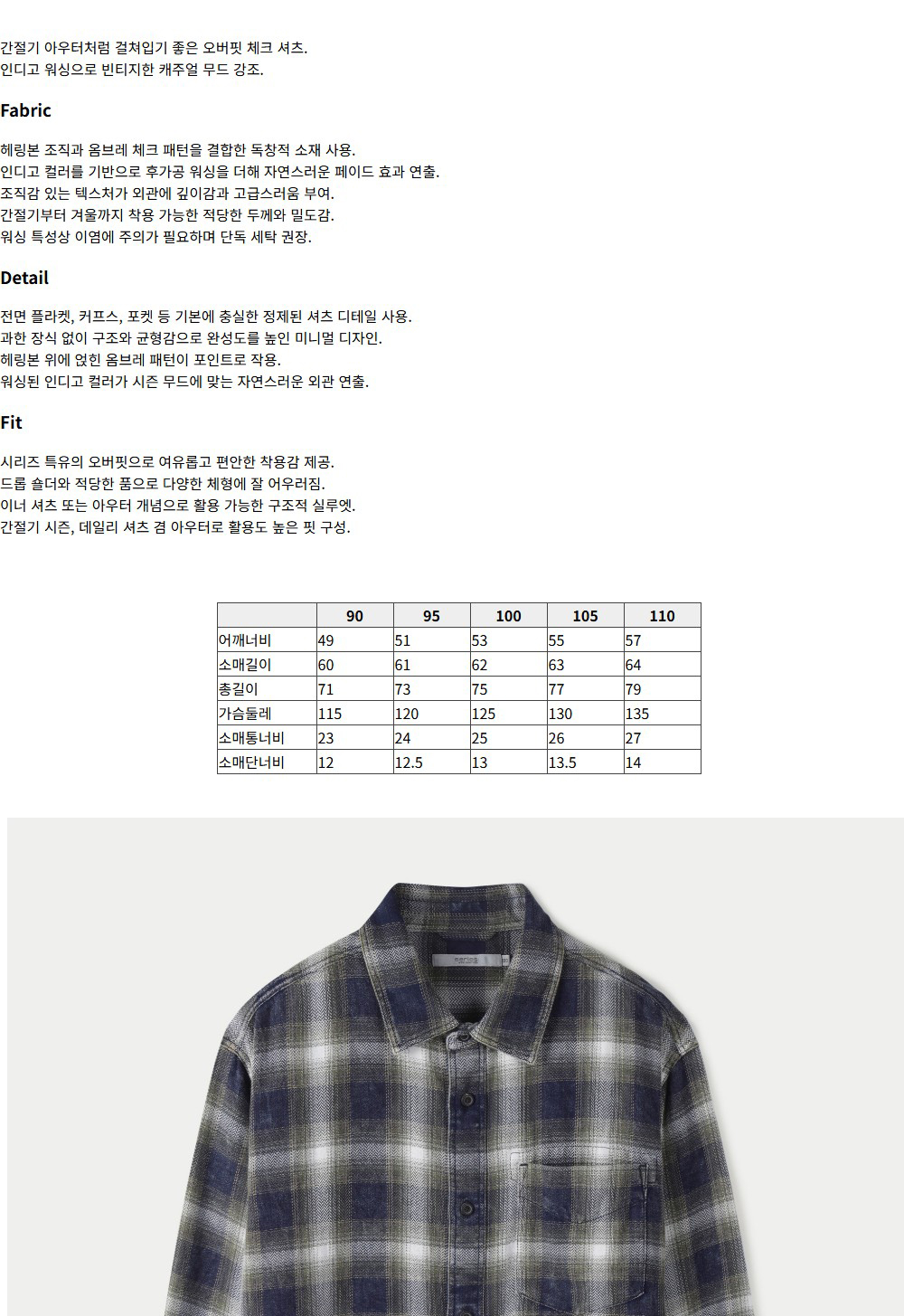 시리즈 인디고 워싱 체크 오버형 셔츠 인디고