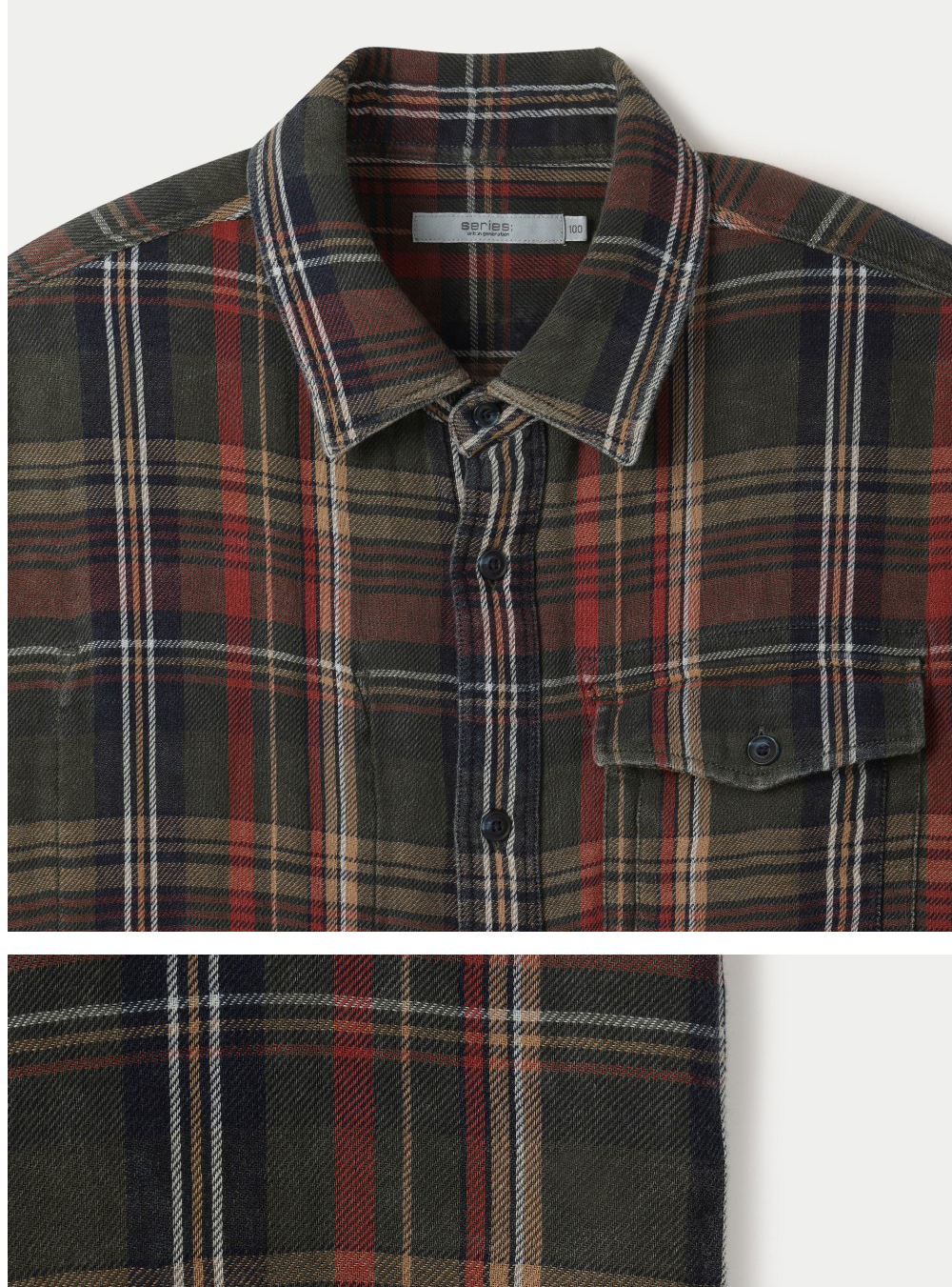 시리즈 빈티지 워싱 체크 오버형 셔츠 레드