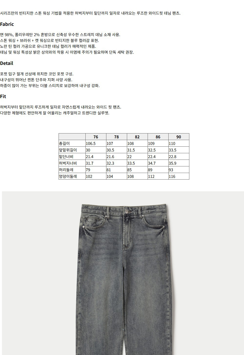 시리즈 돌청 워싱 와이드 데님팬츠 인디고